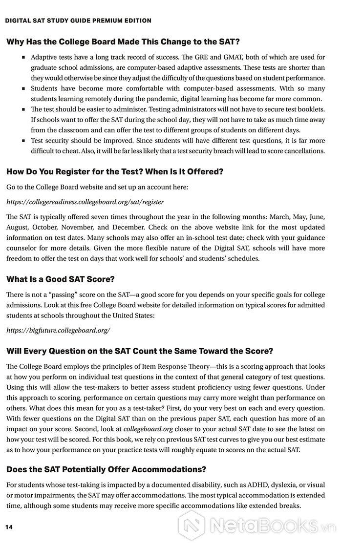 Kỳ thi SAT luôn là cánh cửa quan trọng mở ra cơ hội bước vào những trường đại học hàng đầu thế giới. Nhưng để đạt điểm cao, thí sinh không chỉ cần kiến thức mà còn phải nắm chắc cấu trúc đề thi, hiểu rõ cách tính điểm và có một chiến lược ôn luyện thông minh. Chính vì vậy, Digital SAT Study Guide Premium Edition ra đời như một cẩm nang toàn diện giúp bạn chinh phục kỳ thi phiên bản số hóa mới nhất.