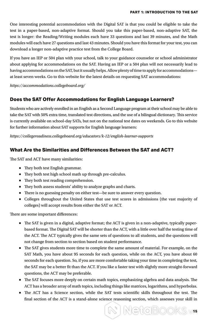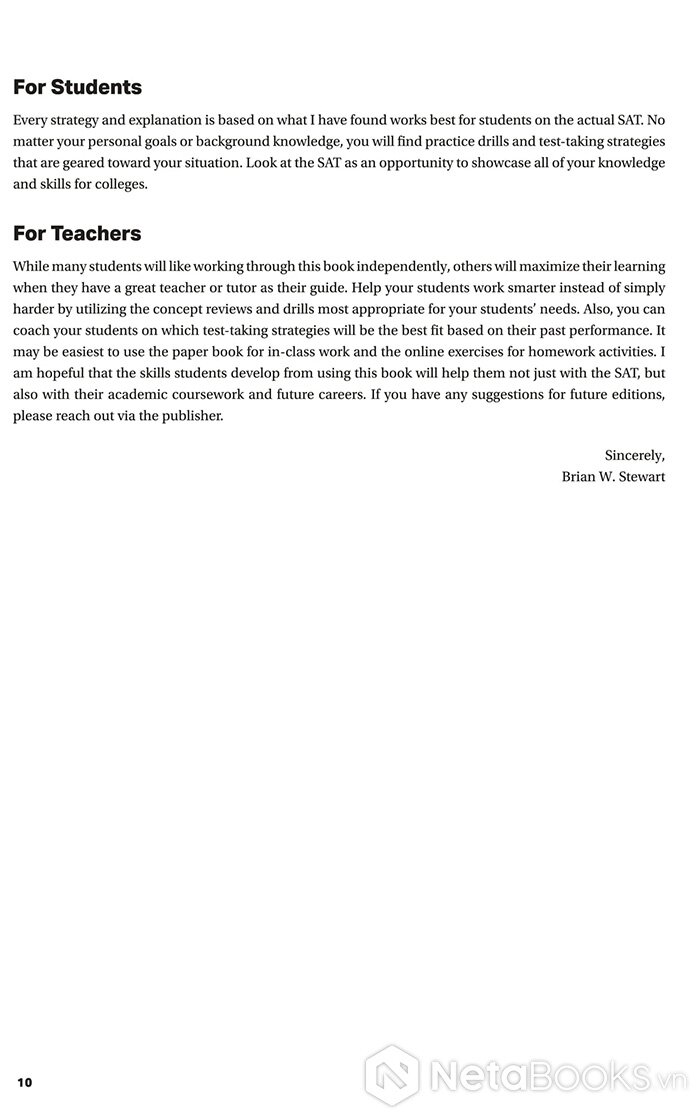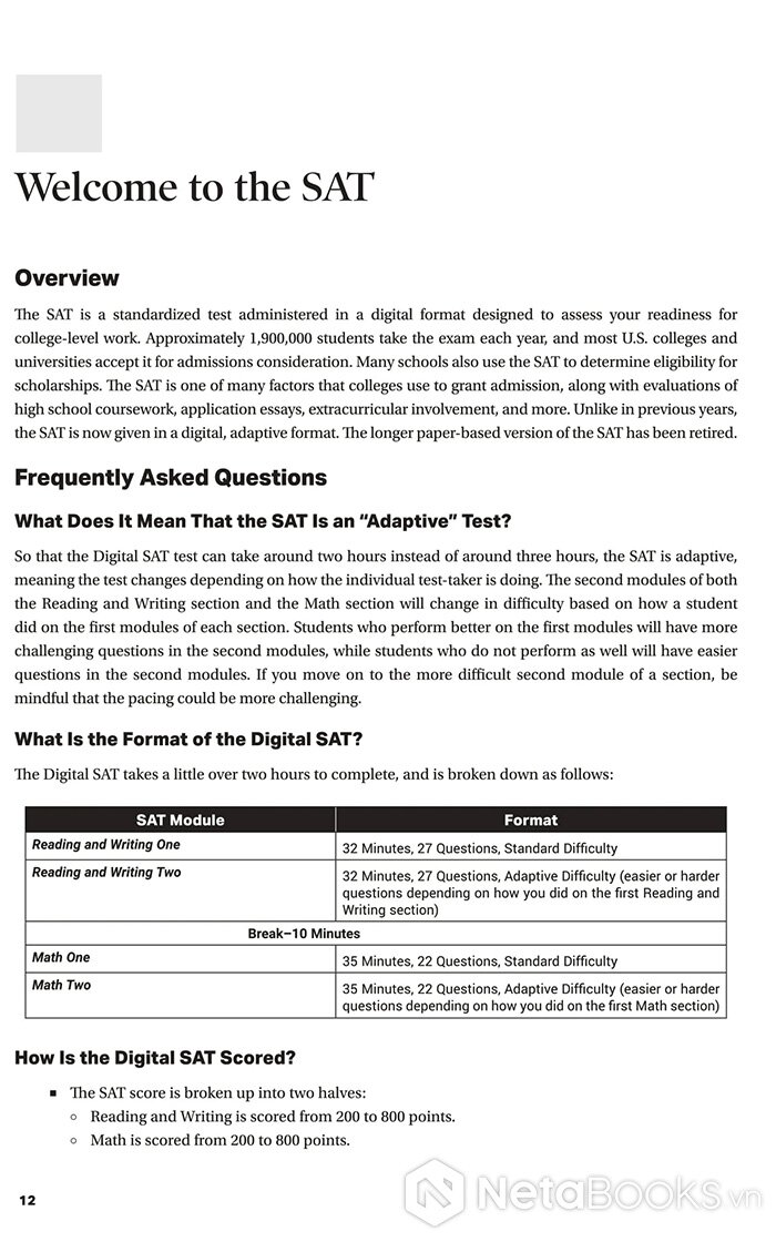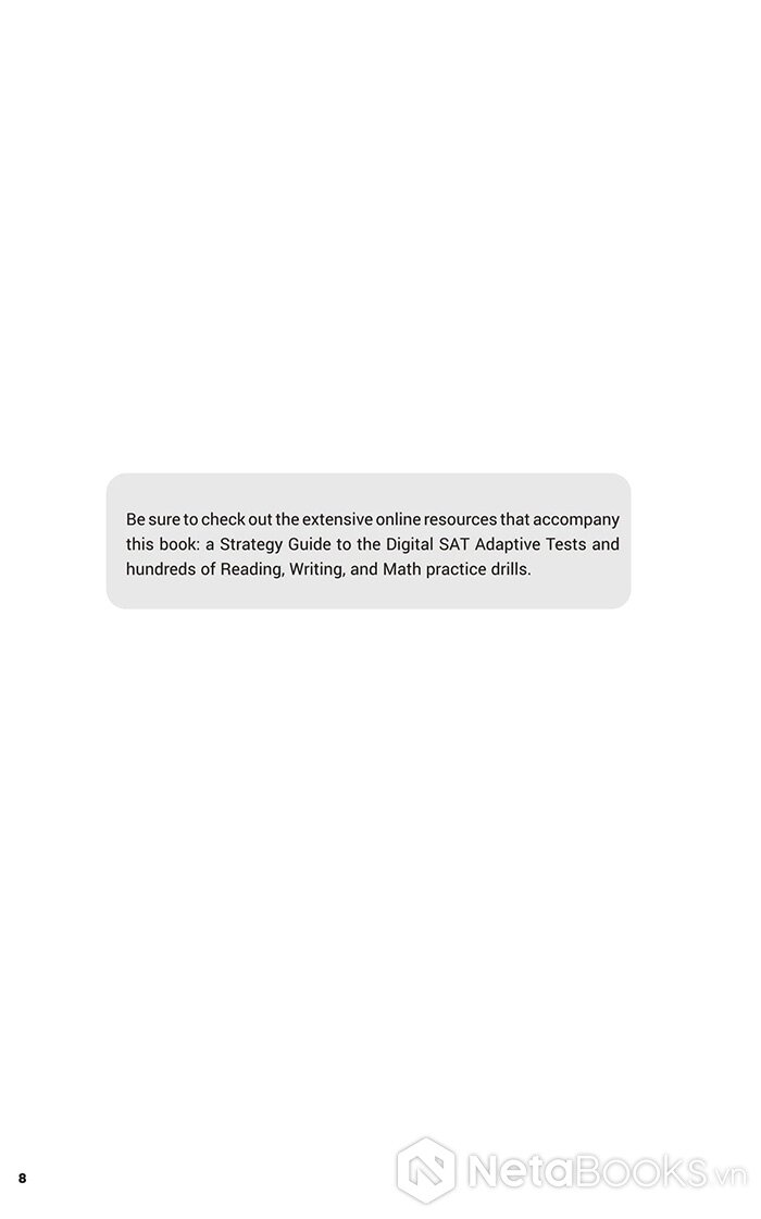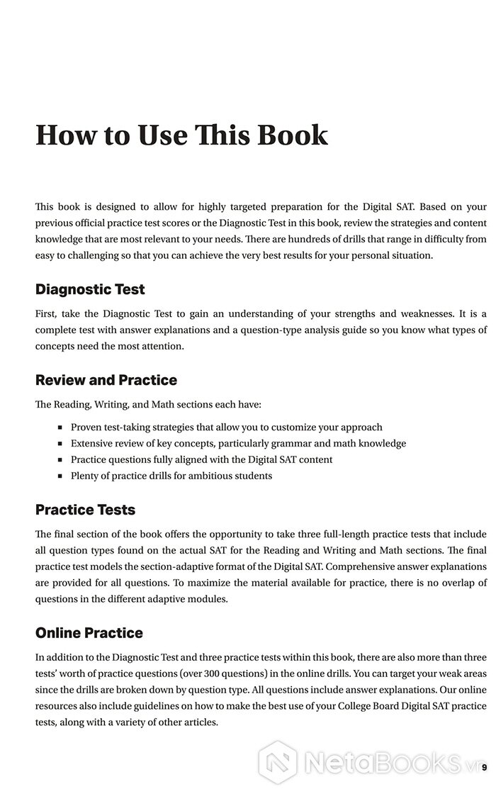 Với tất cả những lợi thế đó, cuốn sách không chỉ đơn thuần là một tài liệu ôn luyện, mà là “người bạn đồng hành chiến lược” cho mọi sĩ tử trên con đường chinh phục điểm SAT mơ ước. Dù bạn mới bắt đầu làm quen hay đang trong giai đoạn tăng tốc, cuốn sách sẽ giúp bạn củng cố nền tảng, luyện kỹ năng, và tự tin tiến gần hơn đến cánh cửa đại học trong mơ.