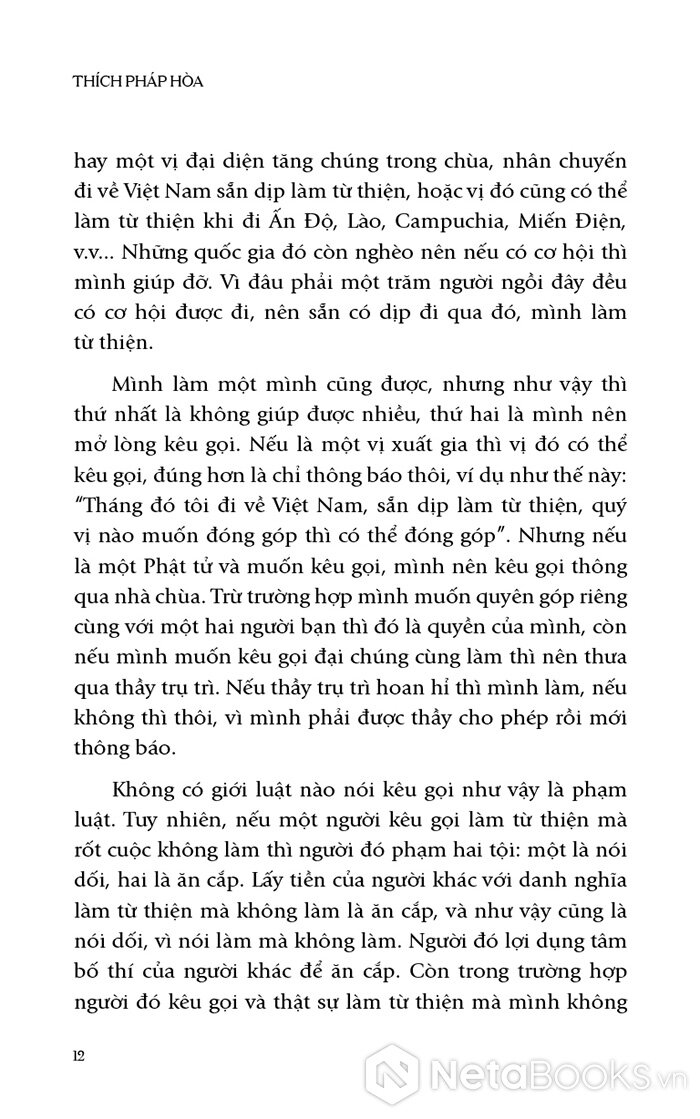 "Nếu có người tạo duyên bố thí, tức là thuận duyên tốt, thì mình nên ủng hộ."