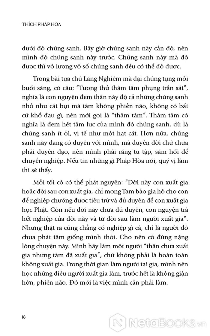 Người đọc có thể cảm nhận được tâm niệm của thầy Pháp Hòa khi đọc các câu trả lời của thầy với đại chúng: mình cứ làm mọi việc hết lòng, sống với tâm thành thì không có gì vướng bận.