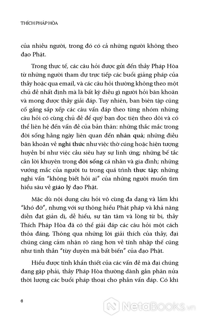 Các câu vấn đáp được chọn lọc là những thắc mắc của cá nhân người hỏi nhưng mang tính phổ quát và rất thiết thực, nên nhiều người đọc có thể tìm thấy mình trong đó và áp dụng.