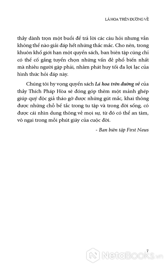 Sách Lá Hoa Trên Đường Về của tác giả Thích Pháp Hòa, có bán tại Nhà sách online NetaBooks với ưu đãi Bao sách miễn phí và Gian hàng NetaBooks tại Tiki với ưu đãi Bao sách miễn phí và tặng Bookmark