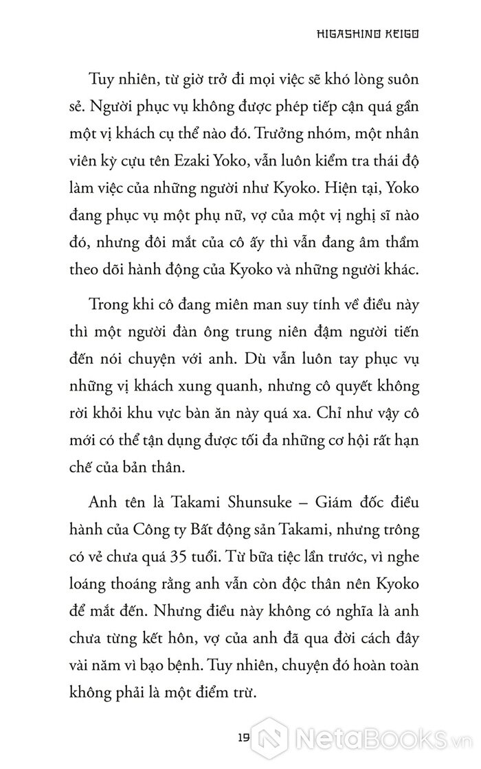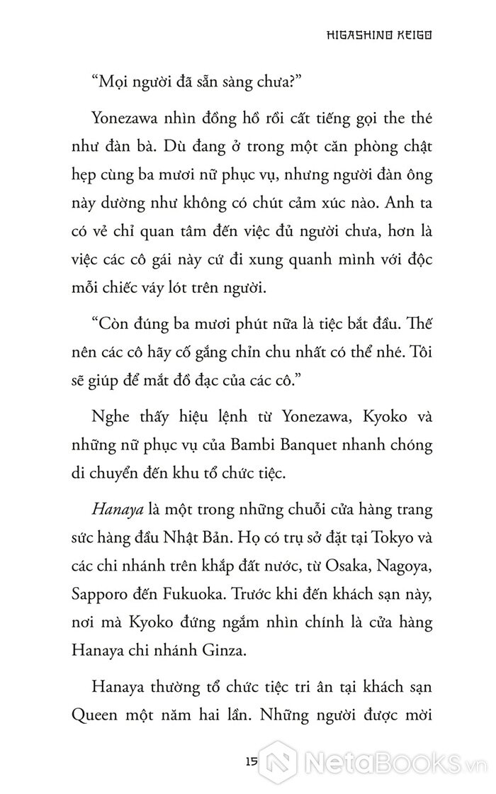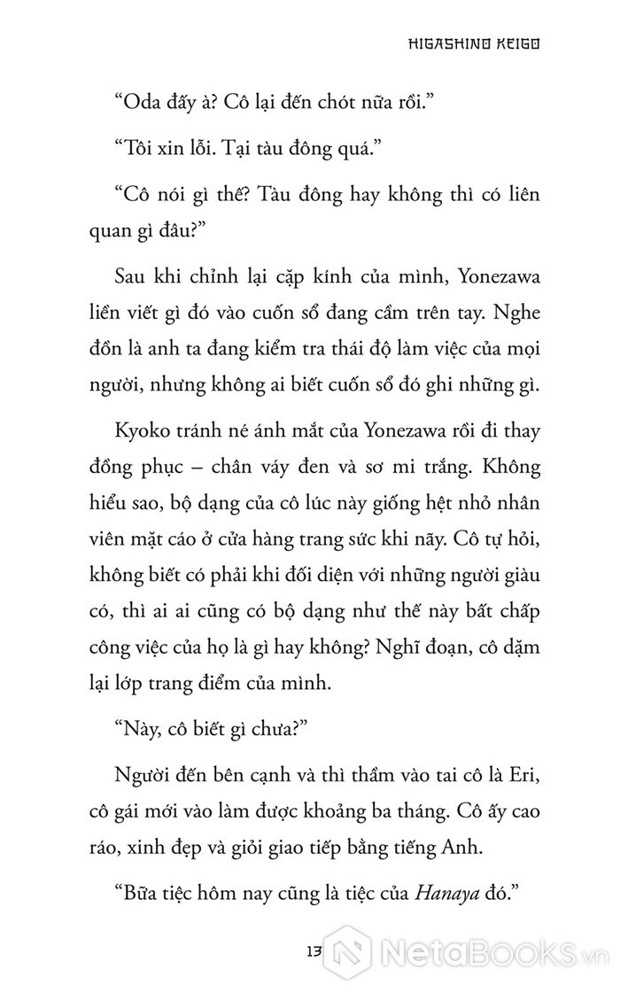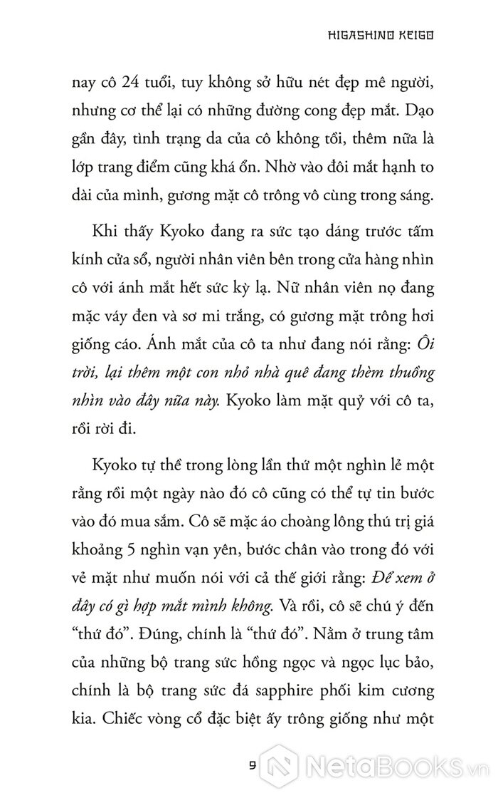 2. Phong cách thời kỳ đầu của Higashino Keigo, cuốn sách mang màu sắc nhẹ nhàng, đời thường hơn, mang không khí trinh thám nhẹ, tập trung vào các mối quan hệ xã hội, sự giả dối, lòng tham, và góc khuất trong đời sống thường nhật.