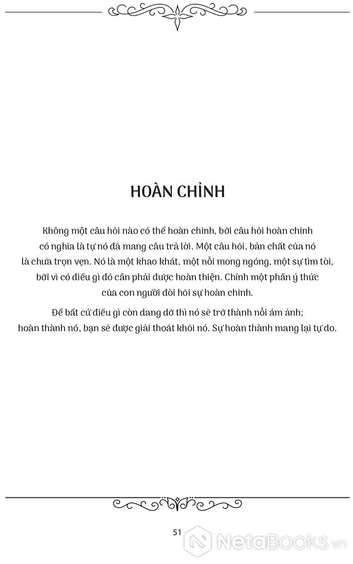Con người bên trong bạn chỉ đơn giản cho bạn thấy phải làm gì, đi đâu, theo hướng nào. Nó cực kỳ dứt khoát, không bao giờ ngập ngừng, hồ nghi, do dự. Và sự sáng suốt ấy sâu sắc đến mức bạn không thể bỏ lỡ nó; bạn sẽ nhìn thấy được ánh sáng. (Trang 15)