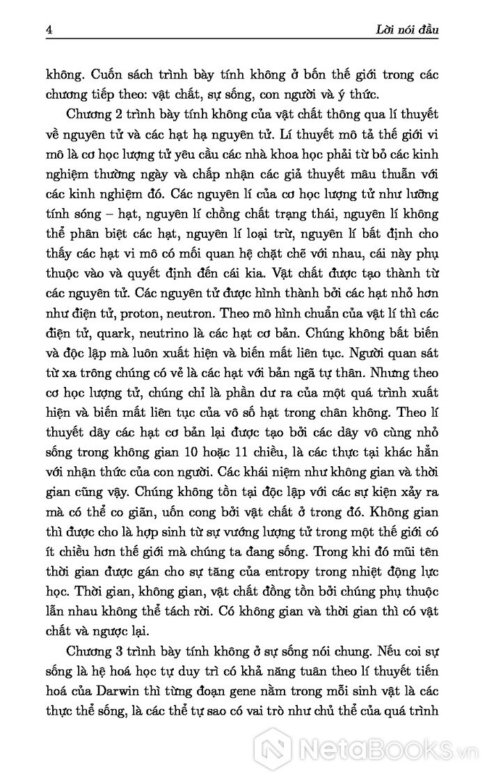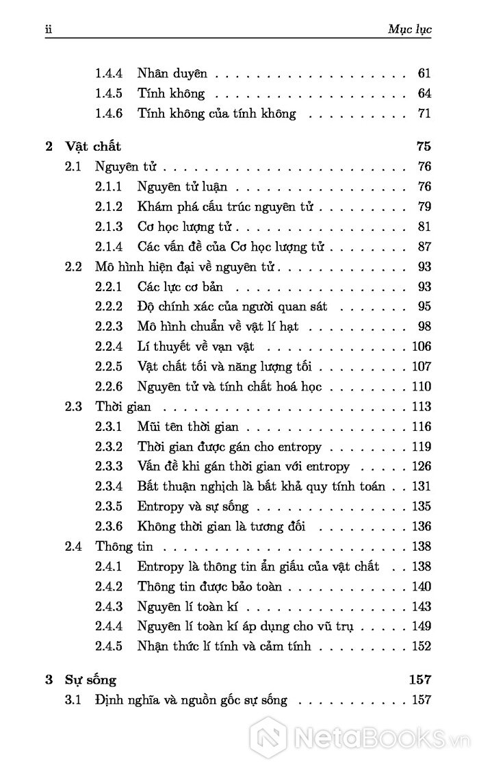 - Chương 2: Trình bày tính không của vật chất thông qua lí thuyết về nguyên tử và các hạt hạ nguyên tử.