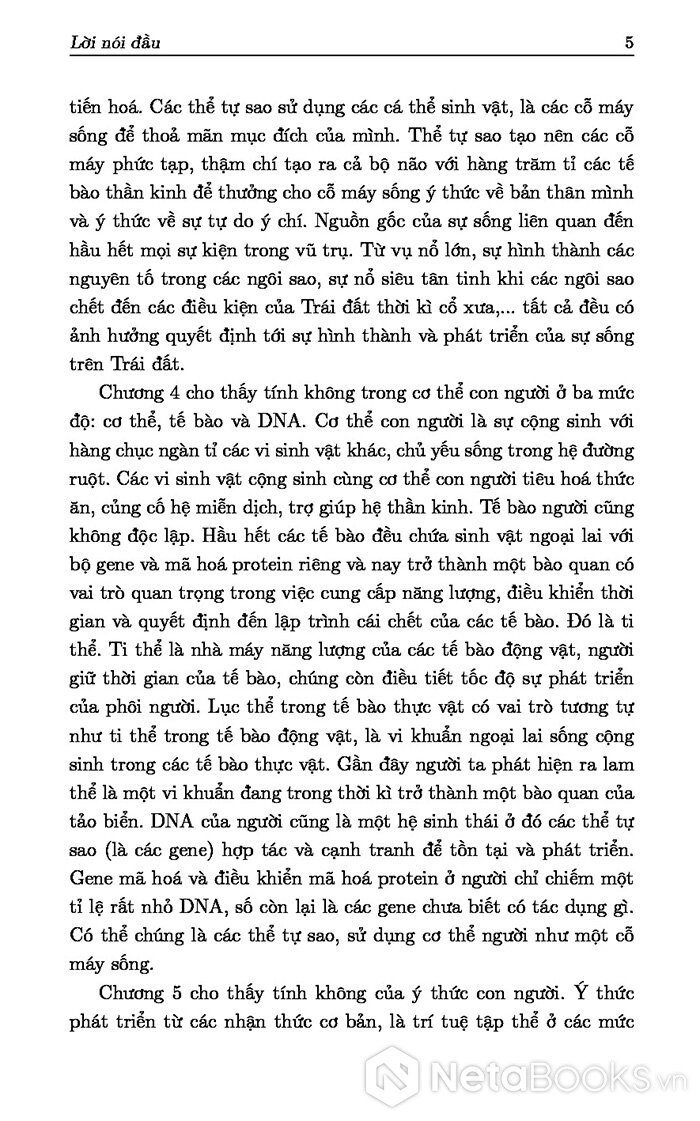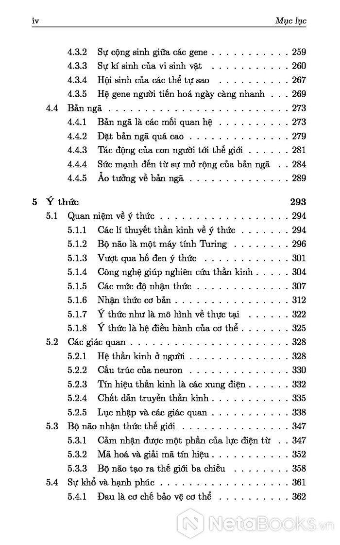 - Chương 5: Tính không của ý thức con người. Ý thức phát triển từ các nhận thức cơ bản, là trí tuệ tập thể ở các mức độ cấu trúc khác nhau.
