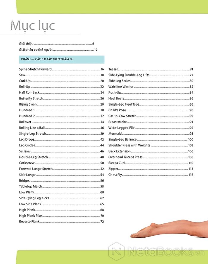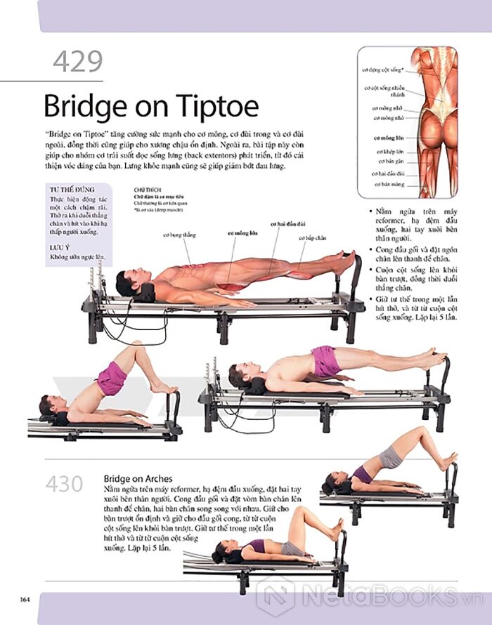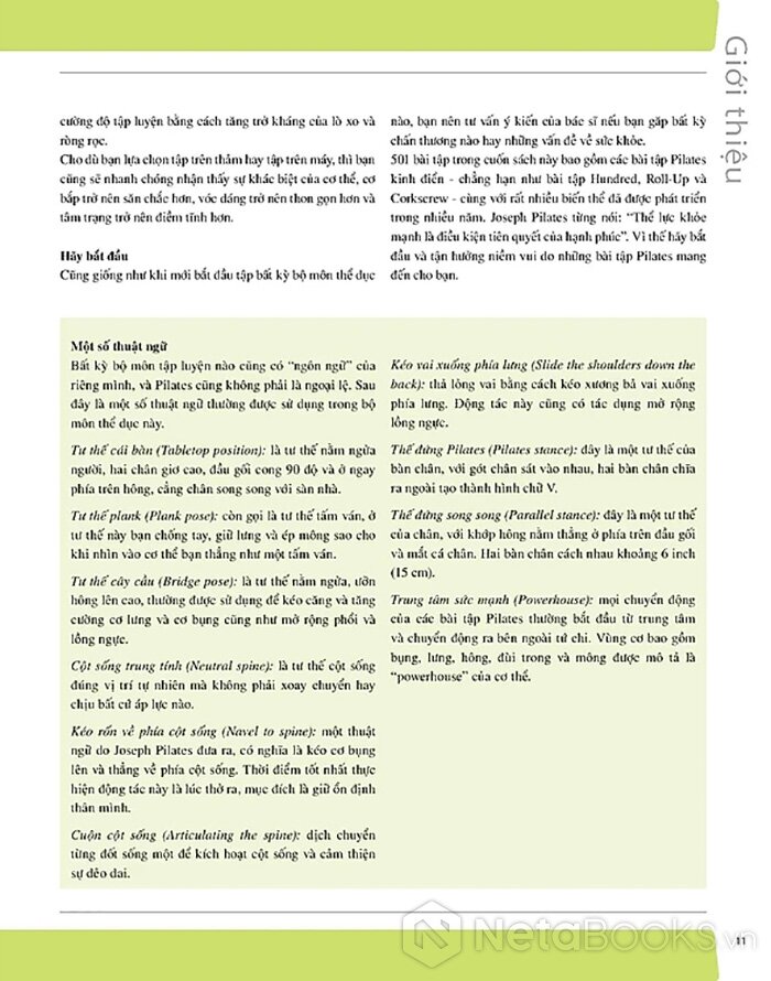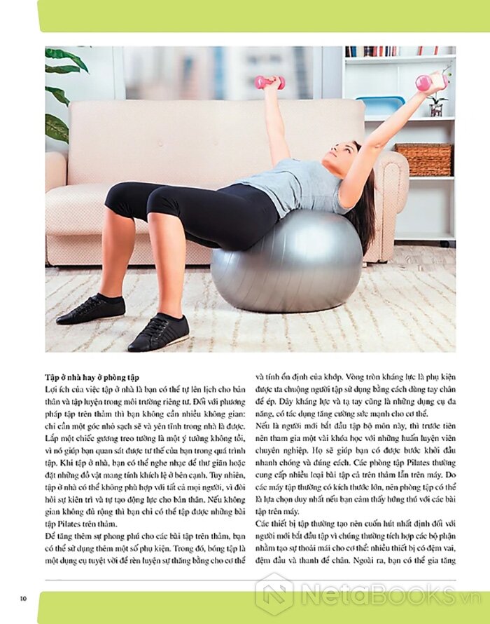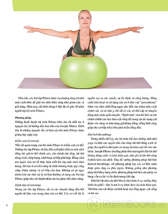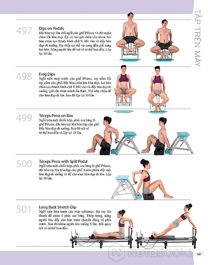 Sách hướng dẫn chi tiết 501 bài tập Pilates tập trên thảm và tập trên máy kết hợp giữa tinh thần và thể chất giúp cơ thể nâng cao sức mạnh, cải thiện sự dẻo dai và khả năng giữ thăng bằng, cơ thể thon gọn hơn với nguyên tắc tập luyện, các tư thế đúng cùng những hình ảnh hướng dẫn minh họa thực tế.