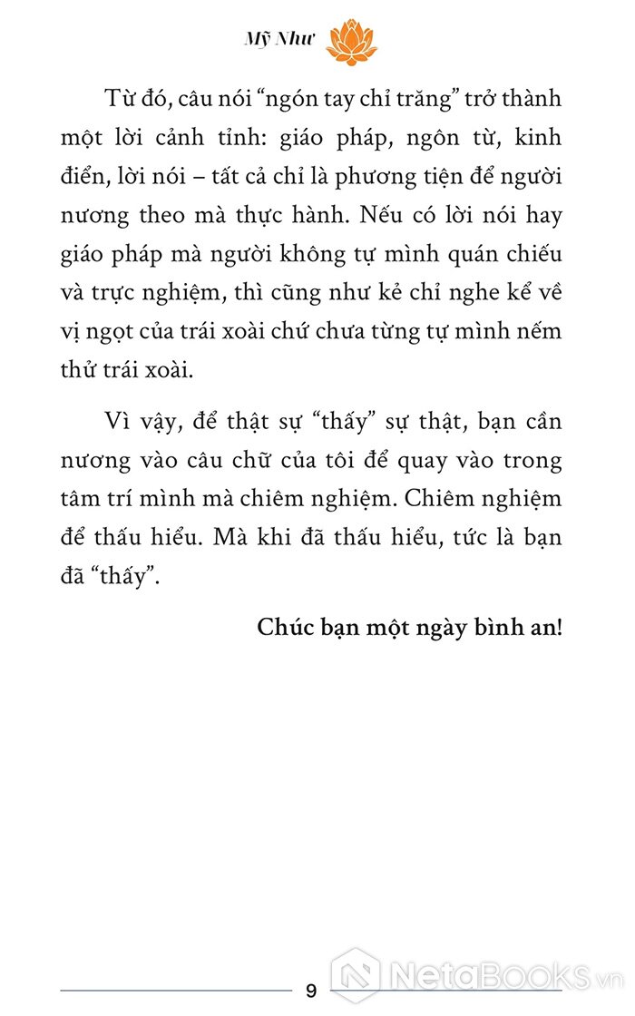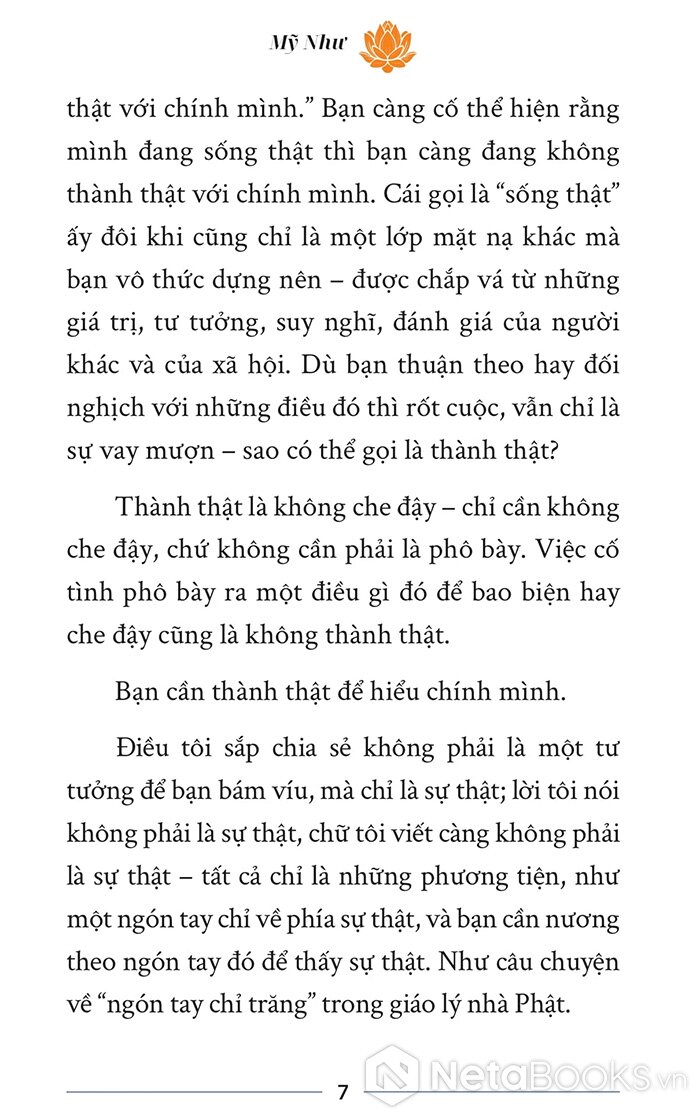 “Người ta đã ảo tưởng về bạn, vậy mà bạn lại tưởng là thật, rồi buồn - vui - thương - ghét theo cái ảo tưởng đó. Thậm chí, bạn còn bận tâm tìm cách khiến người ta thay đổi suy nghĩ về mình. Làm như vậy chẳng khác nào nấu cát mà mong thành cơm.”