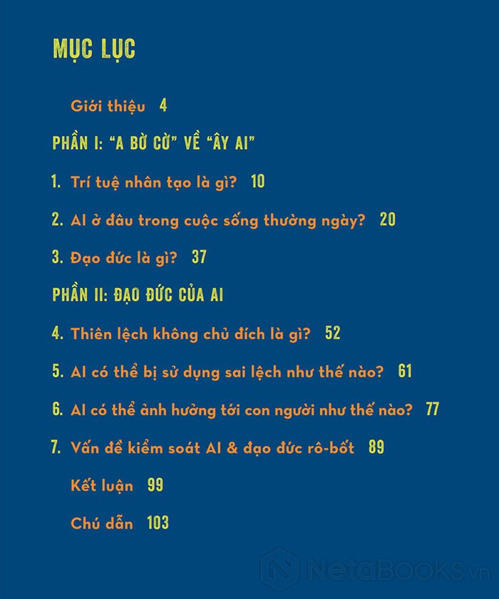 "Ây Ai" Có Gì Sai? - Những Điều Cơ Bản Về Đạo Đức AI Để Sống Cùng Trí Tuệ Nhân Tạo không phải cuốn sách nghiên cứu chuyên sâu cho nhà khoa học hay hướng dẫn tường tận cách sử dụng một công cụ AI cụ thể. Cung cấp những kiến thức cơ bản và dễ hiểu về cách AI định hình thế giới của chúng ta, cuốn sách sẽ cùng chúng ta khám phá AI là gì, cách nó vận hành, nơi nó hiện diện, và đặc biệt là vấn đề đạo đức của AI. Ví dụ như, những rủi ro khi chúng ta lạm dụng AI; tác động của AI đến tương lai; cách để con người kiểm soát được AI.