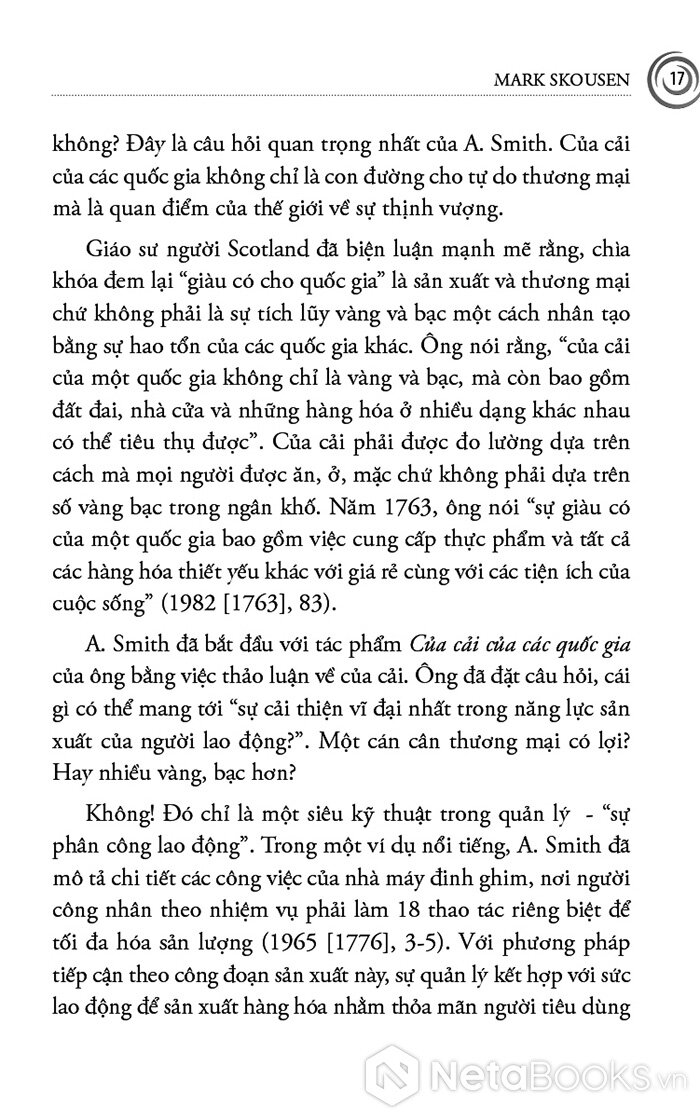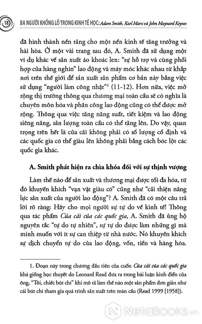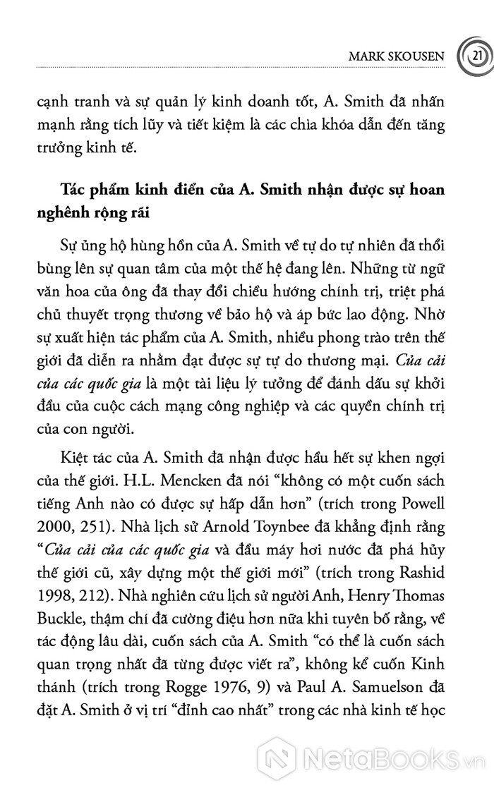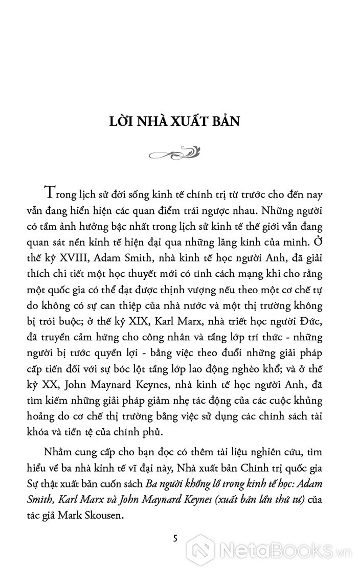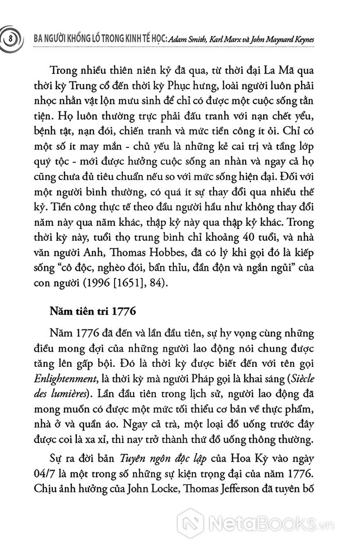 Cuốn sách mở đầu bằng Adam Smith - người đặt nền móng cho kinh tế học hiện đại với niềm tin vào thị trường tự do, cạnh tranh và “bàn tay vô hình”. Skousen không chỉ trình bày những nguyên lý cơ bản của Smith, mà còn tái hiện bối cảnh Cách mạng Công nghiệp, khi tư bản, lao động và thương mại bùng nổ, buộc nhân loại phải lần đầu tiên suy nghĩ một cách có hệ thống về sản xuất, phân phối và tăng trưởng. Từ đó, người đọc hiểu vì sao tư tưởng tự do kinh tế lại có sức sống mãnh liệt đến vậy trong suốt thế kỷ XIX và đầu thế kỷ XX.