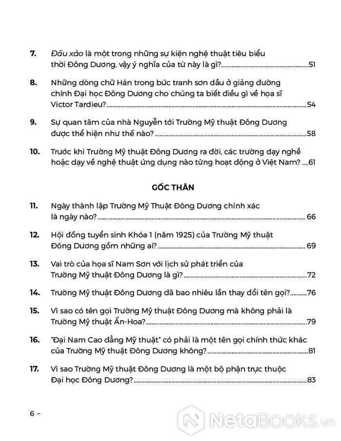 - Phần 2 - Gốc Thân (34 câu hỏi): Tái hiện những năm tháng khi đã hình thành và bắt đầu đi vào hoạt động của Trường Mỹ thuật Đông Dương.