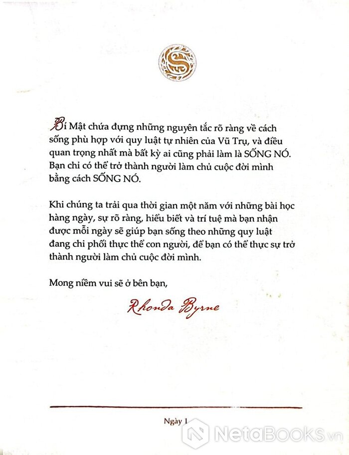 Tận hưởng nhiều niềm vui, sự giàu có và phước lành với các hướng dẫn trong 365 ngày được xây dựng dựa trên những sự thật mạnh mẽ của Bí mật. Cuốn sách hoàn hảo để đặt trên bàn làm việc hoặc bàn cạnh giường ngủ của bạn.