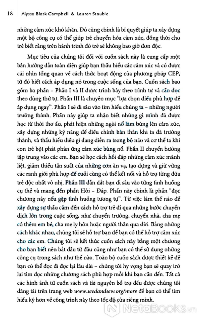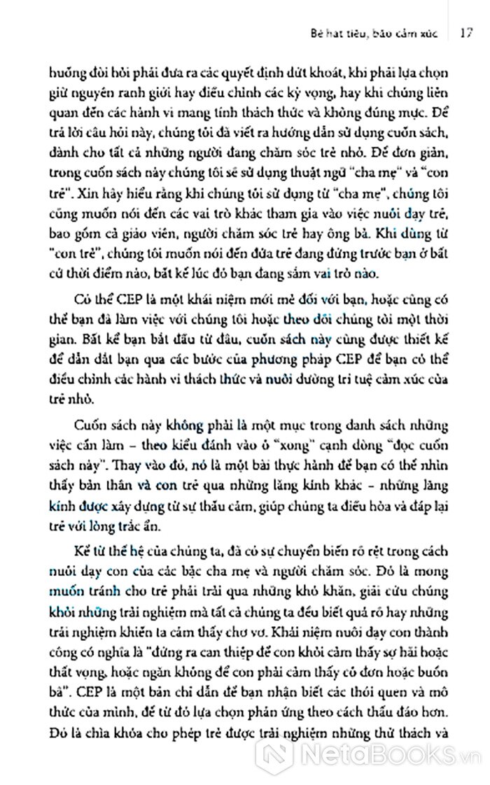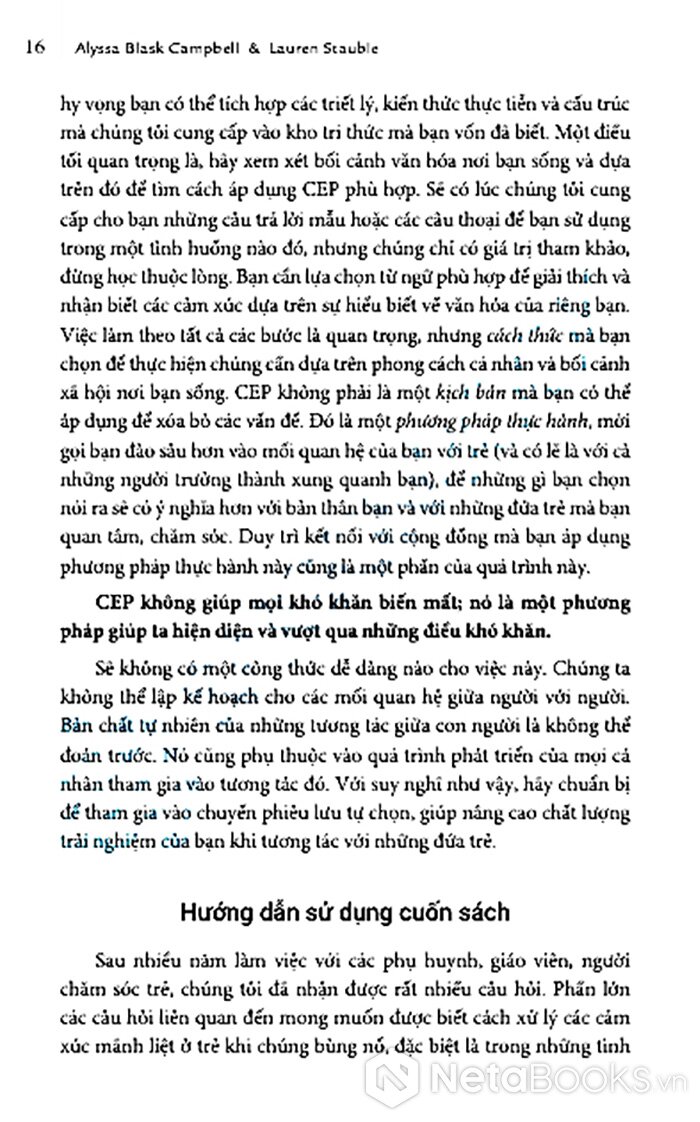 Không giống như những tài liệu nuôi dạy con khác chỉ tập trung vào việc kiểm soát hành vi của trẻ bằng phần thưởng hay hình phạt,, cuốn sách này mang đến phương pháp Xử lý Cảm xúc Hợp tác (CEP). Điểm khác biệt cốt lõi nằm ở chỗ: Để giúp trẻ bình tĩnh, trước tiên chính người lớn phải học cách quản lý cảm xúc của mình!