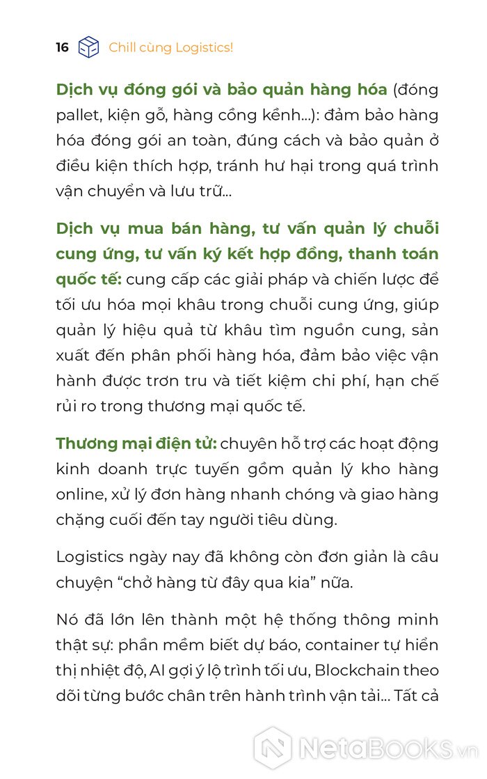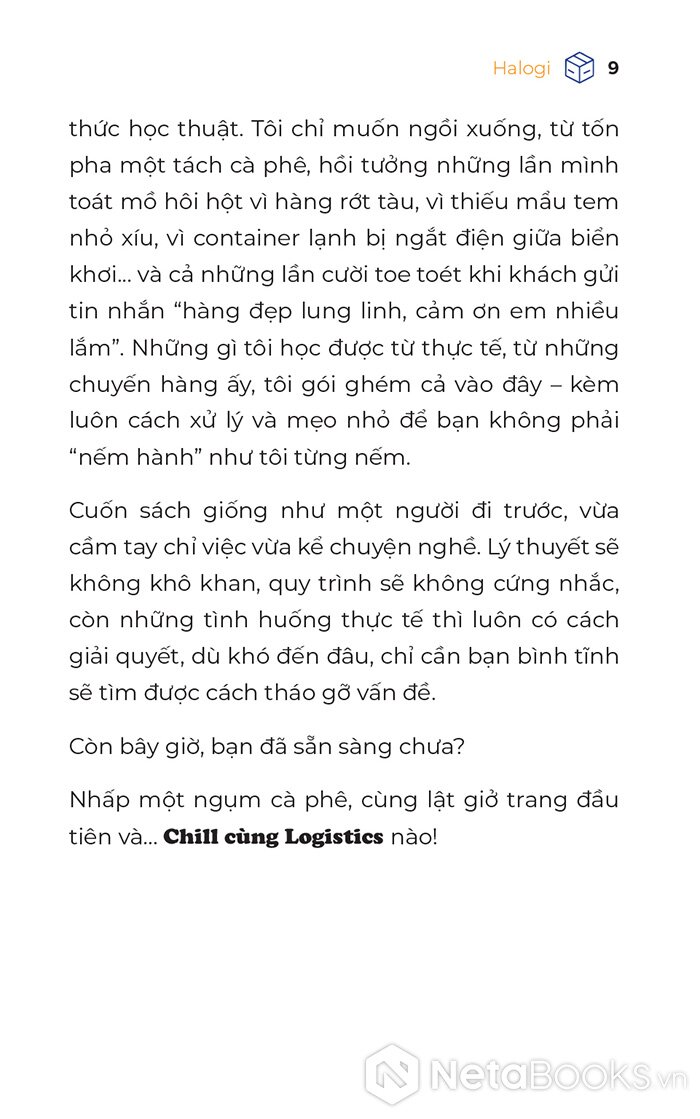 Sách Chill Cùng Logistics - Học Không Áp Lực, Làm Cực Mát Tay của tác giả Halogi, có bán tại Nhà sách online NetaBooks với ưu đãi Bao sách miễn phí và Gian hàng NetaBooks tại Tiki với ưu đãi Bao sách miễn phí và tặng Bookmark
