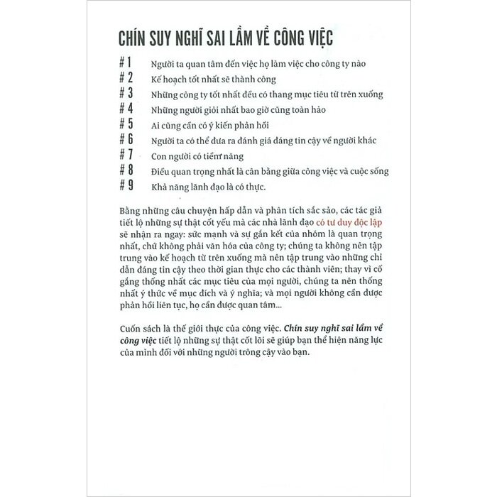 Cuốn sách là thế giới thực của công việc. Chín suy nghĩ sai lầm về công việc tiết lộ những sự thật cốt lõi sẽ giúp bạn thể hiện năng lực của mình đối với những người trông cậy vào bạn.
