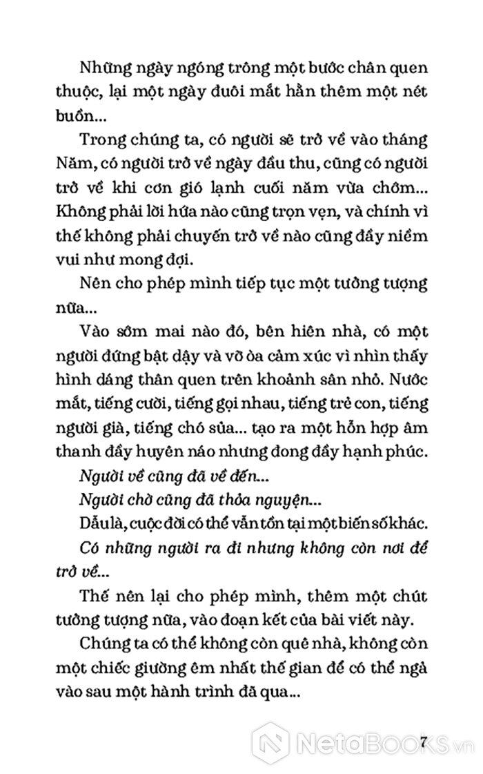 Dù là trở về với những người thân thương, trở về với bộn bề, với an yên ấm áp, hay chỉ trở về với chính mình, thì ai cũng phải trở về.