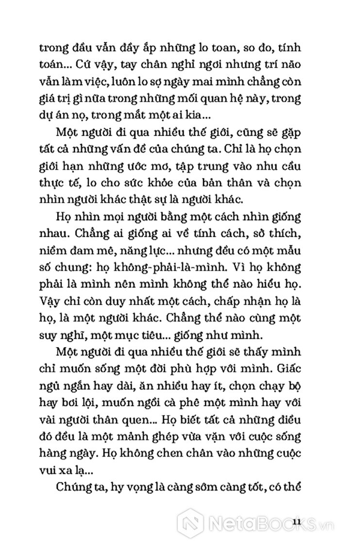 "Chúng ta vẫn còn chúng ta. Chúng ta có thể trở về với những gì tĩnh lặng nhất, thoải mái nhất, tự do nhất… Chúng ta có thể trở về với một niềm yêu thích, nằm nghe những con sóng biển rì rào, ngắm một đêm trăng lên, uống một tách cà phê ngon trong màn sương sớm.