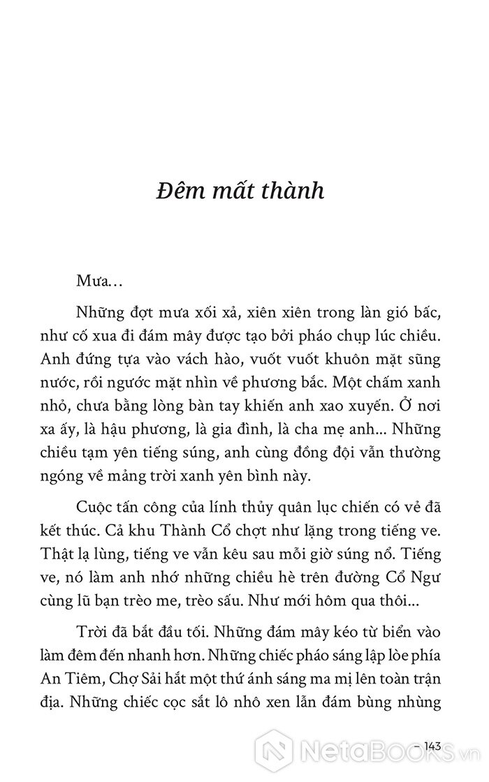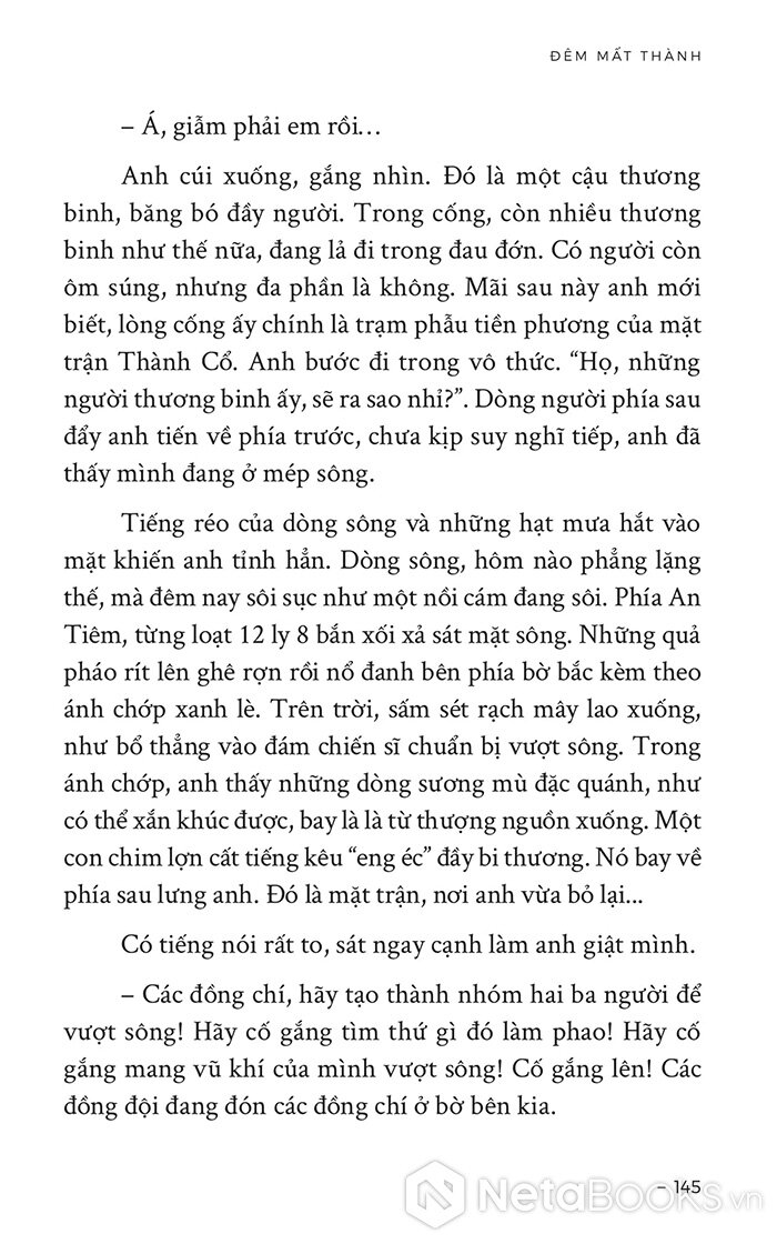 Anh nằm đó, bên bờ sông Thạch Hãn. Bầu trời vần vũ của đêm chiến tranh như đang nghiến răng hầm hè. Cuộc chiến đấu vẫn đang chờ ở phía trước.”