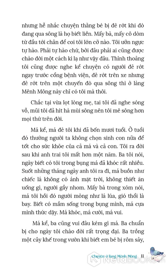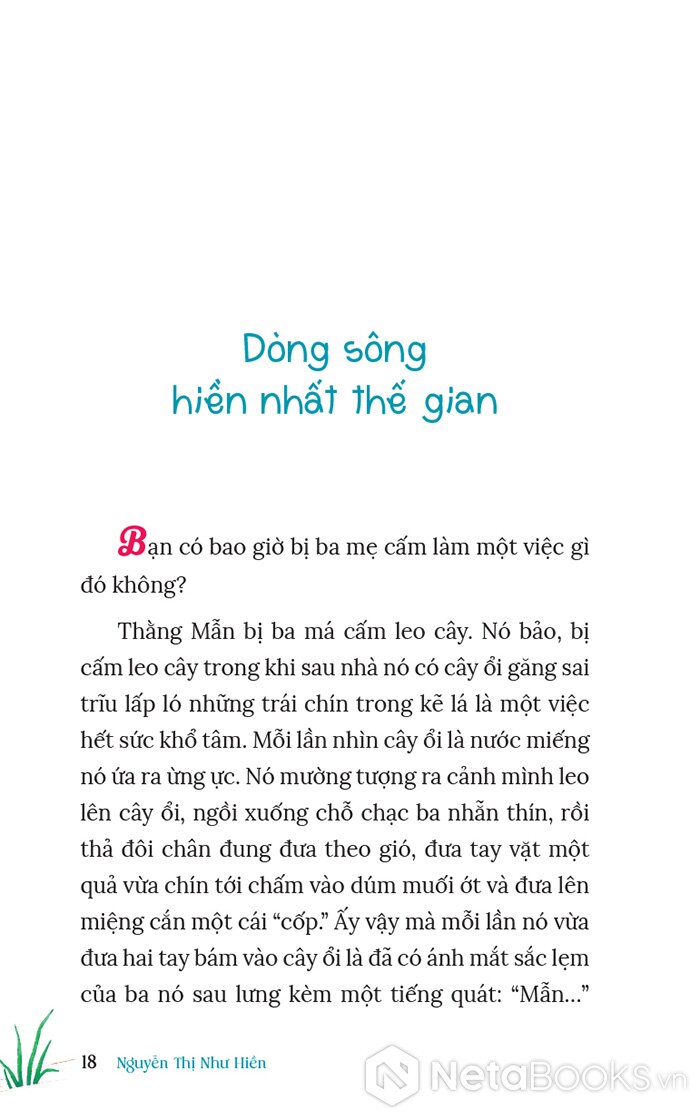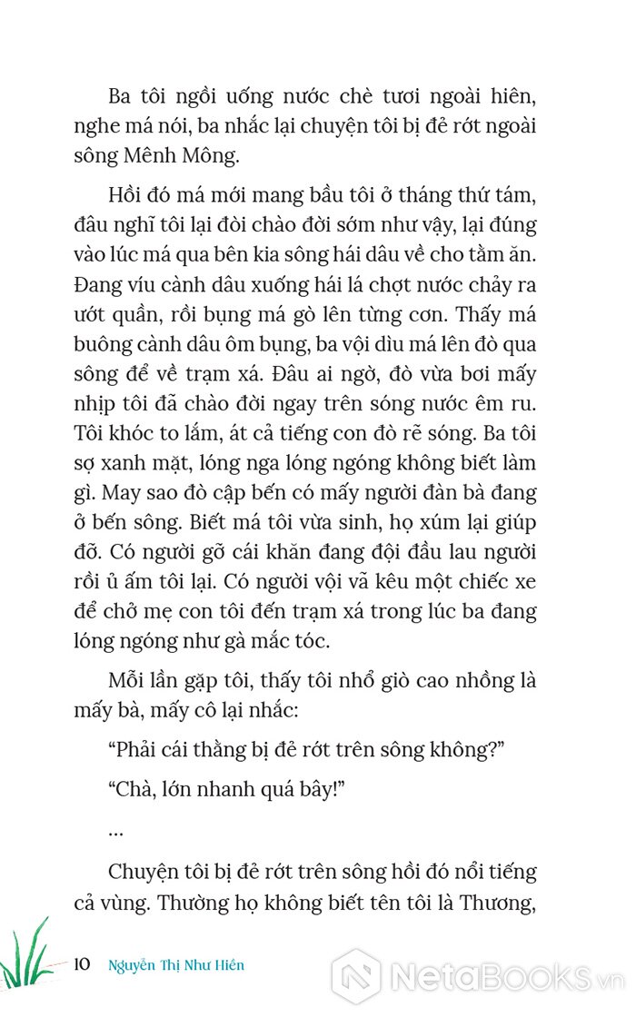 “Tôi nói với ba, để khi nào tôi đủ lớn, tôi cũng sẽ làm một chuyến hành trình đi ngược dòng Mênh Mông. Từ chỗ ba dừng lại, tôi sẽ đi ngược thêm, đi ngược mãi, để tìm được nguồn cội, nơi mạch nước, con suối trong vắt nào đã khởi sinh sông Mênh Mông.” - Nguyễn Thị Như Hiền
