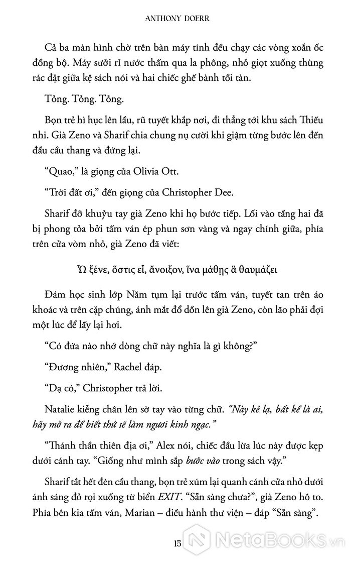 Anna, Omeir, Seymour, Zeno và Konstance là những người mơ mộng và lạc lõng, những người tìm thấy sự tháo vát và hy vọng giữa những hiểm nguy tột cùng. Cuộc đời của họ được đan xen một cách huy hoàng, và trí tưởng tượng rực rỡ của Doerr đưa chúng ta đến những thế giới đầy kịch tính và sống động đến nỗi chúng ta quên đi trong một khoảnh khắc thế giới của chính mình.
