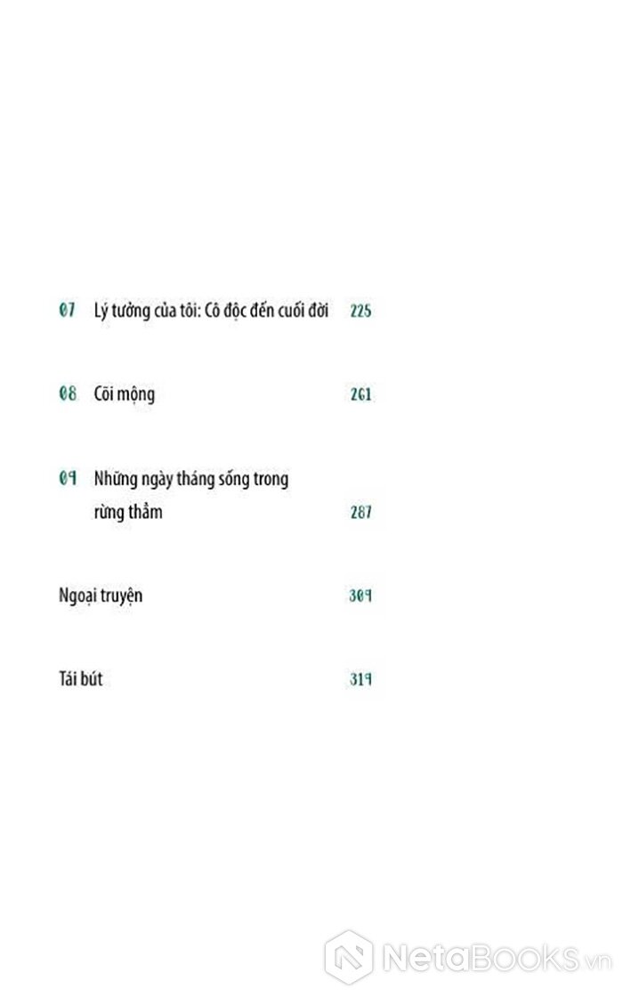 Cuốn sách không kể những biến cố lớn mà tập trung vào những khoảnh khắc rất nhỏ: pha một ấm trà trong buổi sáng lạnh, ngồi nhìn mưa rơi, nghe gió lùa qua cửa sổ, chặt củi, nấu ăn, đi bộ giữa rừng, rồi lắng nghe những suy nghĩ sâu kín nhất của chính mình. Trong không gian ấy, tác giả đối diện với cô đơn, mệt mỏi, ký ức và những tổn thương tích tụ từ đời sống hiện đại, dần học cách chấp nhận sự im lặng, sống chậm lại, sống tối giản, và cảm nhận rằng con người thực ra cần rất ít để hạnh phúc. Rừng không chỉ là bối cảnh mà trở thành người bạn đồng hành, một nơi trú ẩn tinh thần, giúp tác giả tìm lại nhịp thở tự nhiên, sự bình yên nội tâm và cảm giác được “ở đúng chỗ”, để từ đó hiểu rằng chữa lành không phải là trốn chạy thế giới, mà là quay về sống trọn vẹn với hiện tại và với chính mình.