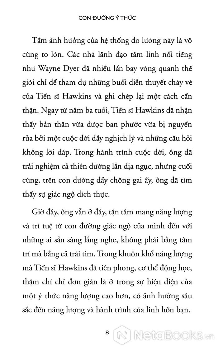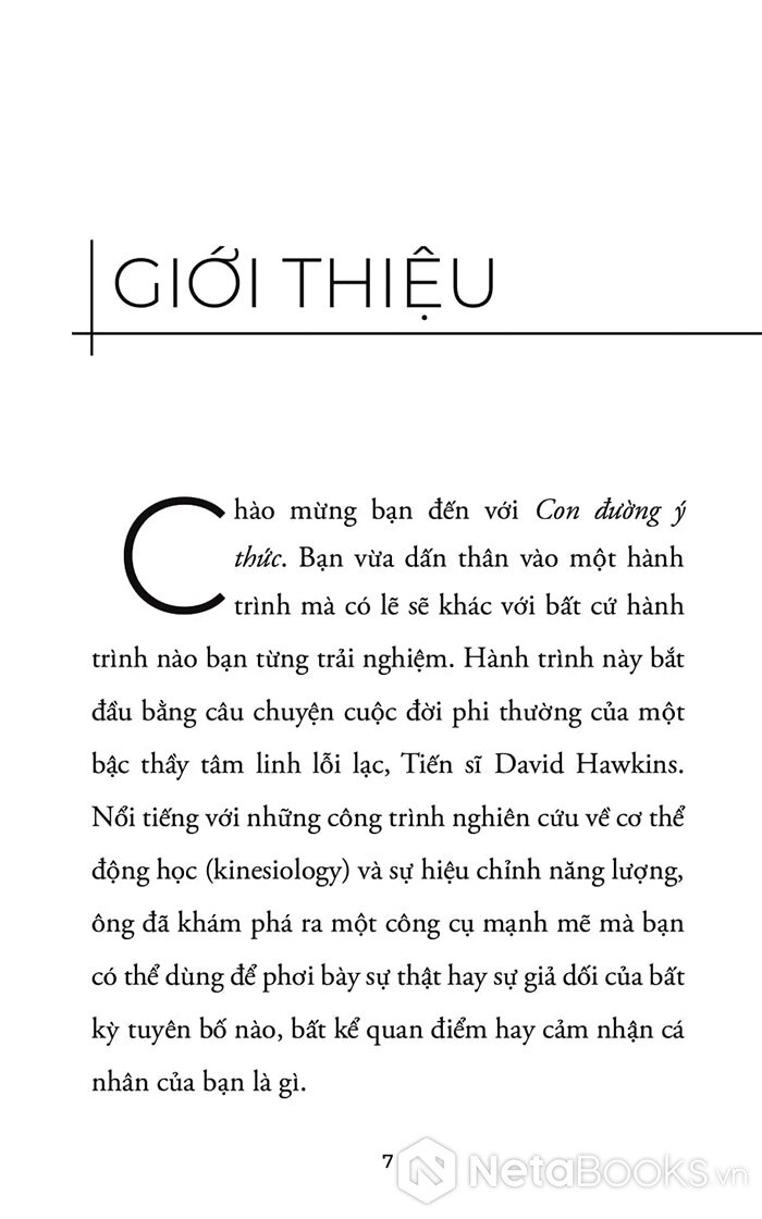 Sách Con Đường Ý Thức - Hành Trình Khai Phá Bản Ngã - Từ Giác Ngộ Đến Tự Do Nội Tại của tác giả David R. Hawkins, có bán tại Nhà sách online NetaBooks với ưu đãi Bao sách miễn phí và Gian hàng NetaBooks tại Tiki với ưu đãi Bao sách miễn phí và tặng Bookmark