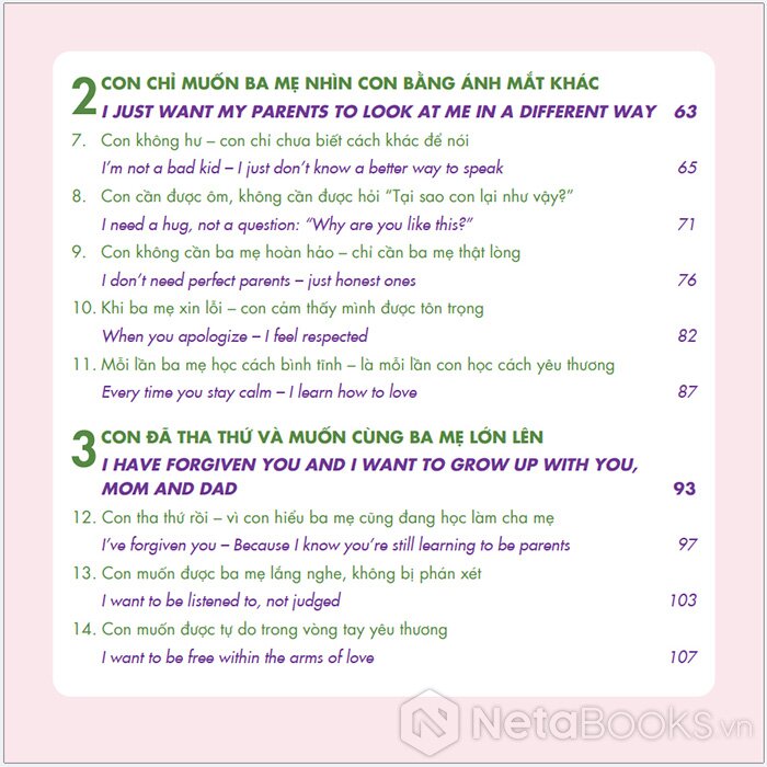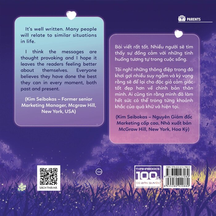 Nếu bạn từng mang những tổn thương tuổi thơ, hoặc từng vô tình làm con đau lòng, thì đây là hành trình chữa lành dành riêng cho bạn. Và nếu bạn đang làm cha mẹ trong thời đại bận rộn này, cuốn sách song ngữ - minh họa đầy cảm xúc này chính là thứ bạn nhất định phải có trên kệ sách của mình.
