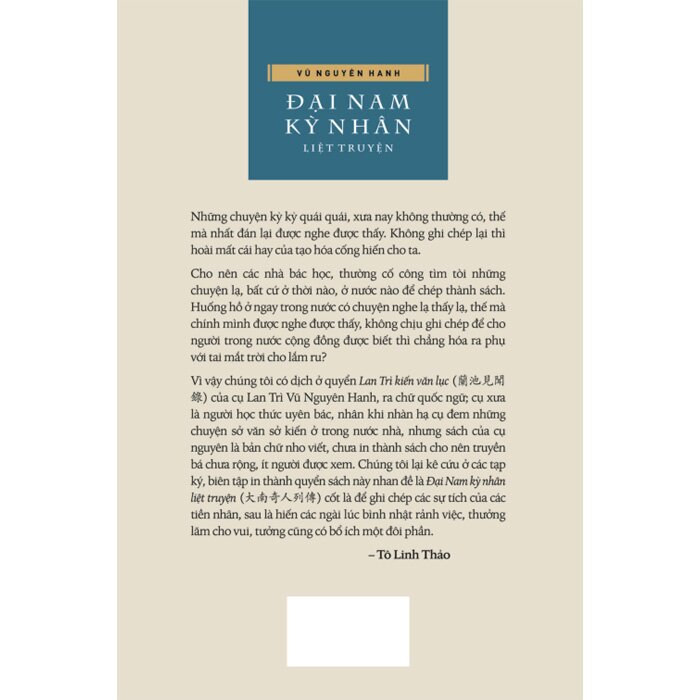 Ra đời năm 1930 trên cơ sở tuyển dịch từ Lan Trì kiến văn lục của Vũ Nguyên Hanh và một số tạp ký khác, Đại Nam kỳ nhân liệt truyện cho thấy nỗ lực của dịch giả Tô Linh Thảo trong việc góp phần đưa dòng truyện truyền kỳ trung đại đến gần hơn với độc giả thế kỷ XX thông qua chữ quốc ngữ.