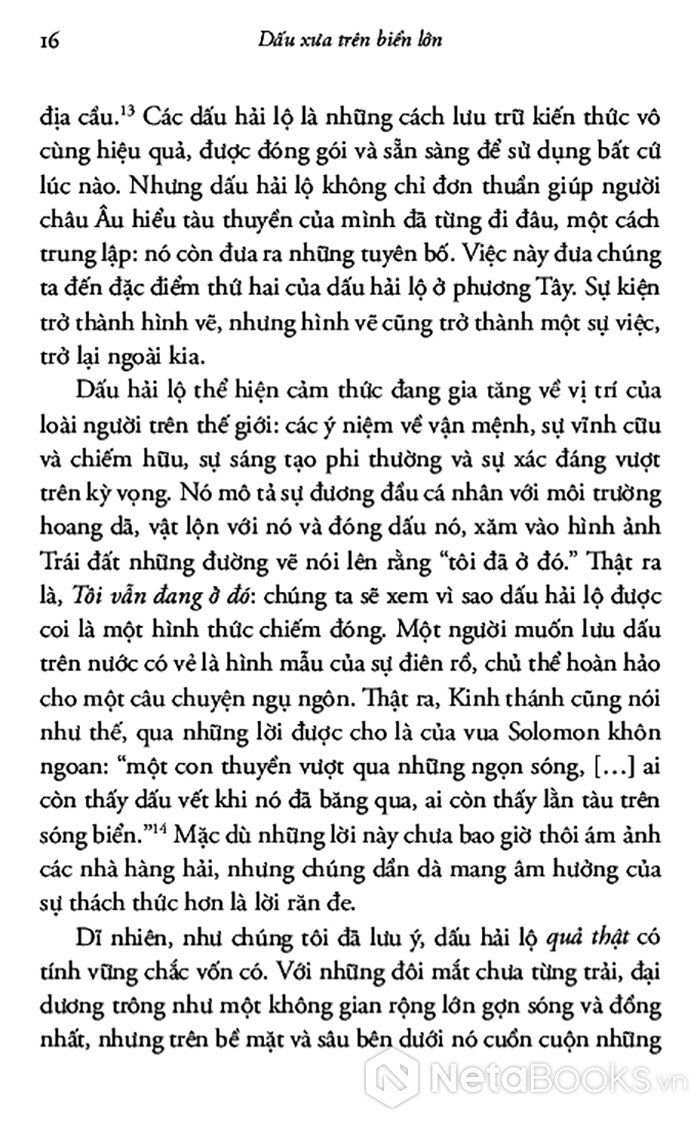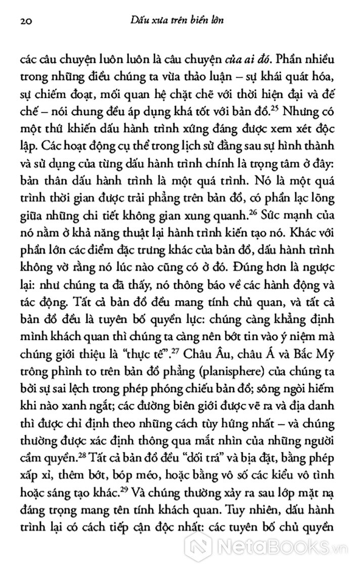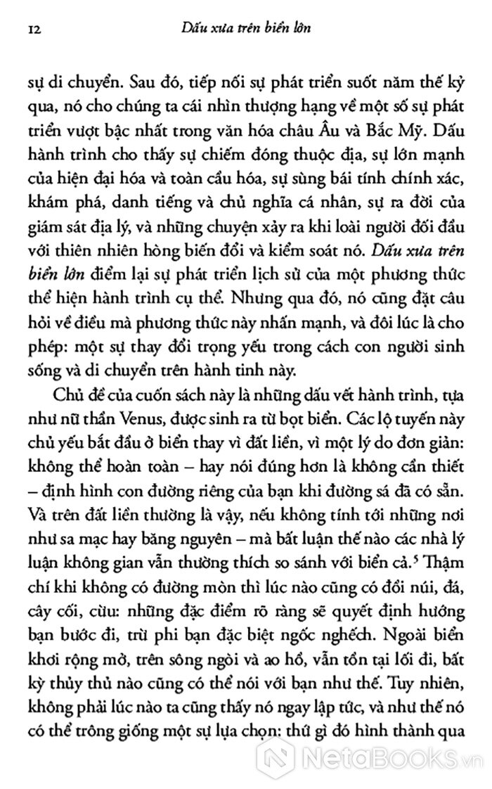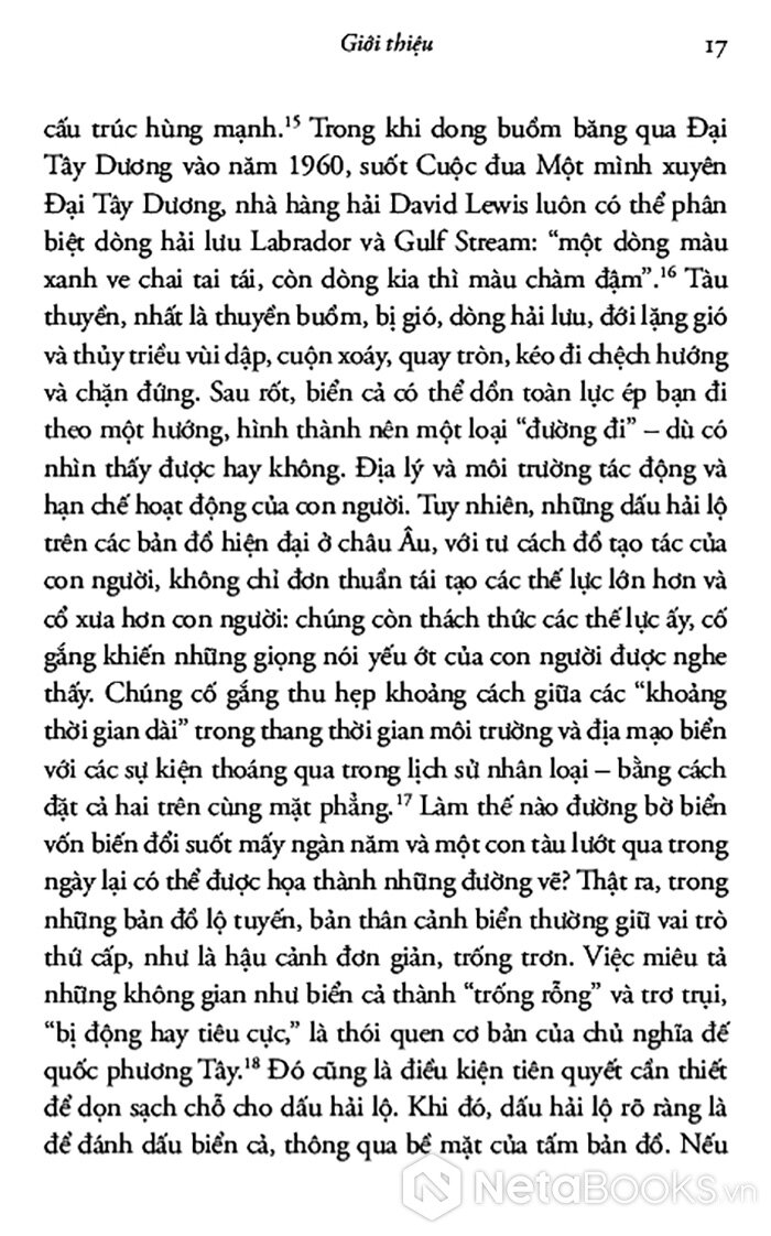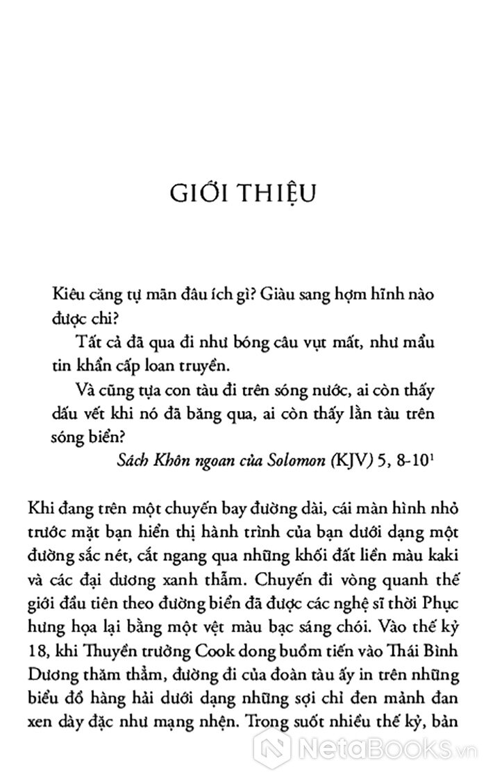 Cuốn sách là lịch sử sâu rộng về cách chúng ta hiểu các tuyến đường di chuyển trên đại dương và cách chúng ta thể hiện chúng như một đường hành trình. Tập trung vào những chuyến đi biển trong thế giới phương Tây từ đầu thế kỷ 16 đến nay, tác giả khéo léo lập luận rằng việc miêu tả những đường này không thể tách rời khỏi chủ nghĩa đế quốc châu Âu, sự trỗi dậy của thời hiện đại và những nỗ lực làm chủ thiên nhiên.
