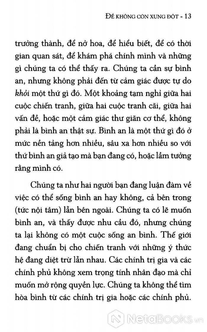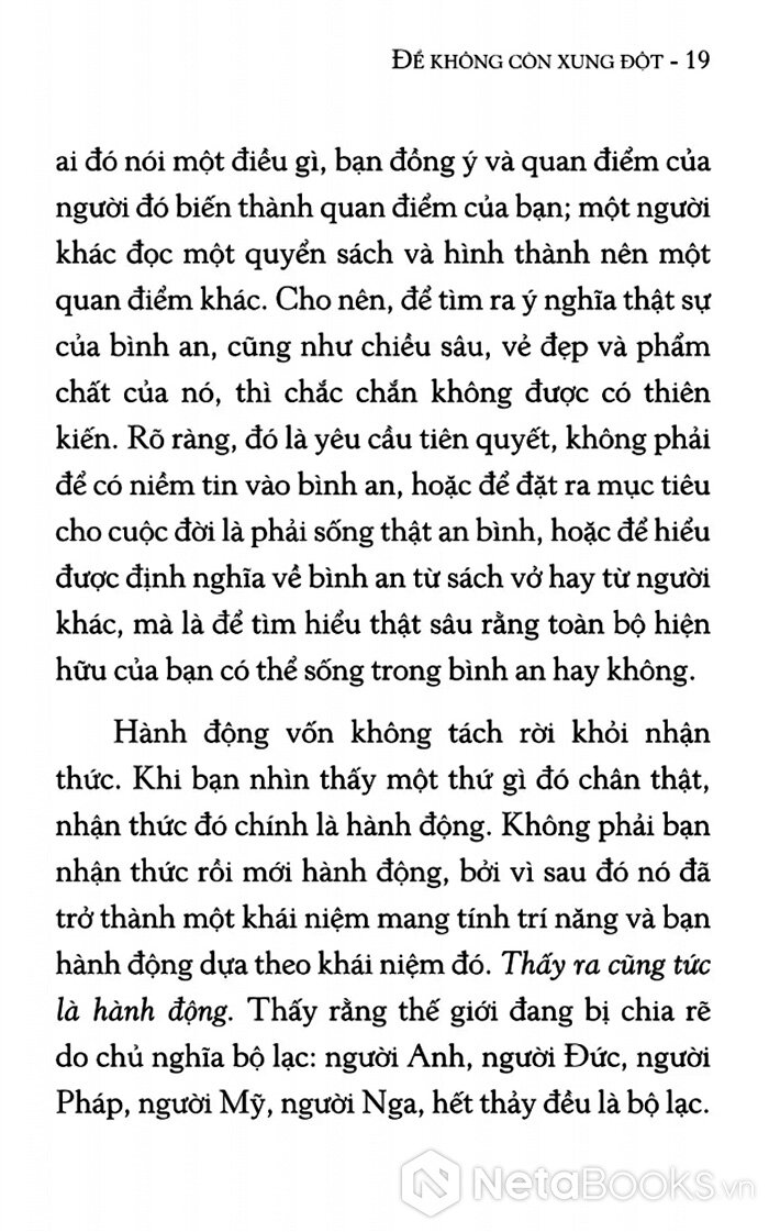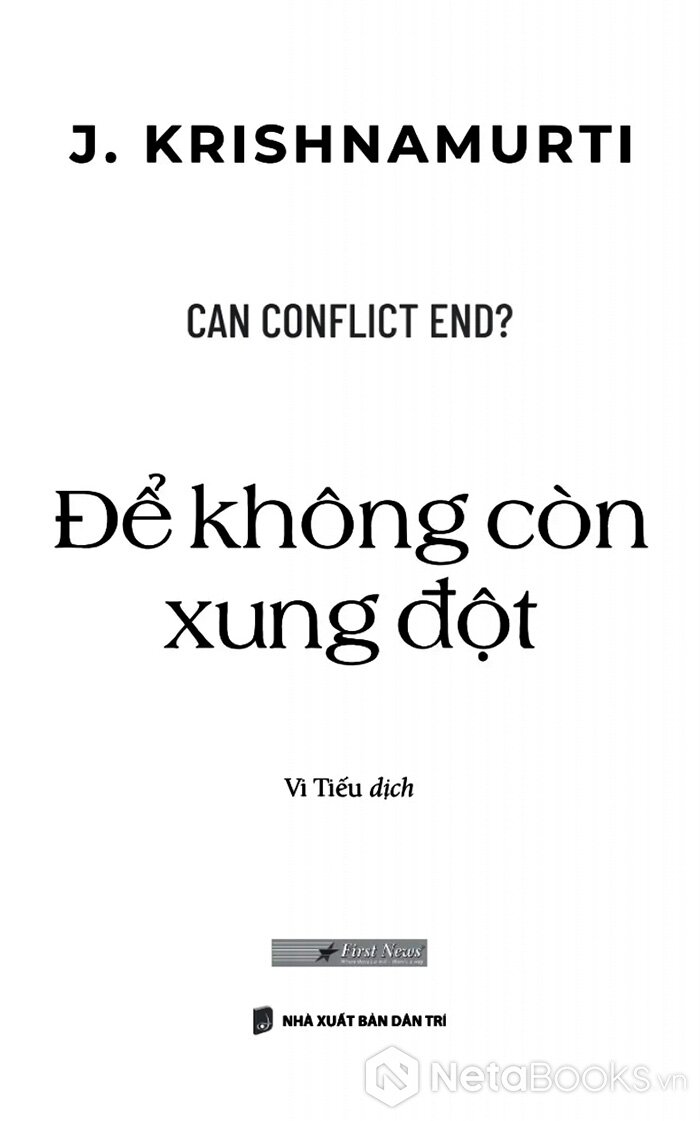 Sách Để Không Còn Xung Đột của tác giả J. Krishnamurti, có bán tại Nhà sách online NetaBooks với ưu đãi Bao sách miễn phí và Gian hàng NetaBooks tại Tiki với ưu đãi Bao sách miễn phí và tặng Bookmark