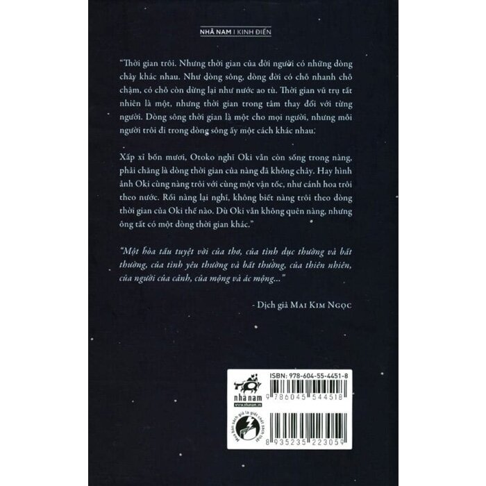 Xấp xỉ bốn mươi, Otoko nghĩ Oki vẫn còn sống trong nàng, phải chăng là dòng thời gian của nàng đã không chảy. Hay hình ảnh Oki cùng nàng trôi với cùng một vận tốc, như cánh hoa trôi theo nước. Rồi nàng lại nghĩ, không biết nàng trôi theo dòng thời gian của Oki thế nào. Dù Oki vẫn không quên nàng, nhưng ông tất có một dòng thời gian khác.