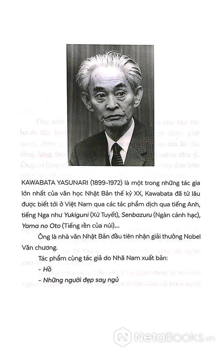 Sinh ngày 14.6.1899, là tiểu thuyết gia người Nhật Bản đầu tiên và là người châu Á thứ ba đoạt giải Nobel Văn chương. Những sáng tác văn chương, những tiểu luận mỹ học và phê bình văn học của Kawabata Yasunari, qua thời gian vẫn luôn đem lại hấp lực mạnh mẽ đối với nhiều nhà phương Đông học trên khắp các châu lục, có sức lôi cuốn rộng rãi độc giả trên thế giới, phản ảnh nhiều phương diện của văn hóa cũng như những rung cảm đầy đam mê mà tinh tế của tâm hồn Nhật Bản.