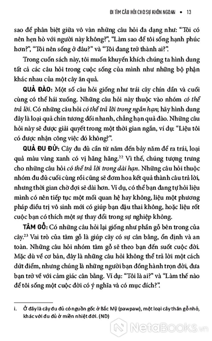 Được viết để truyền cảm hứng cho bất kỳ ai cảm thấy bế tắc, bất lực hoặc cạn kiệt, “Đi tìm câu hỏi cho sự khôn ngoan” thách thức chúng ta mở lối tư duy và bước vào một hành trình khám phá chỉ thực sự bắt đầu lúc ta cảm nhận cuộc sống chân thực nhất - khi ta không biết điều gì sẽ chờ mình phía trước.