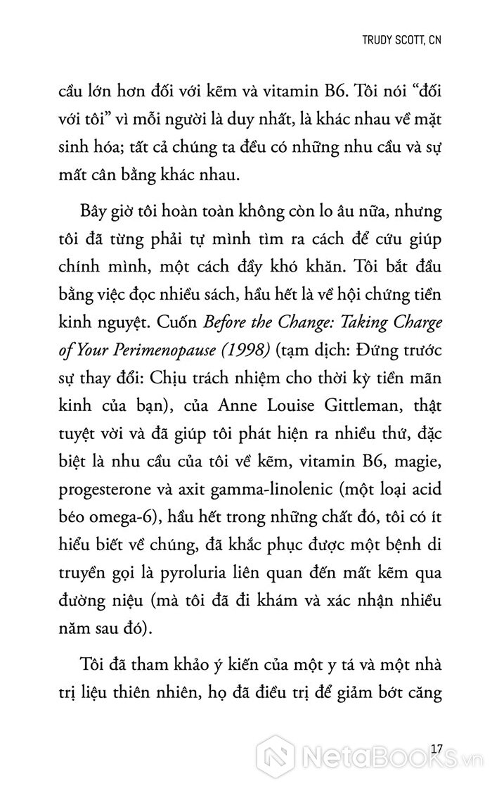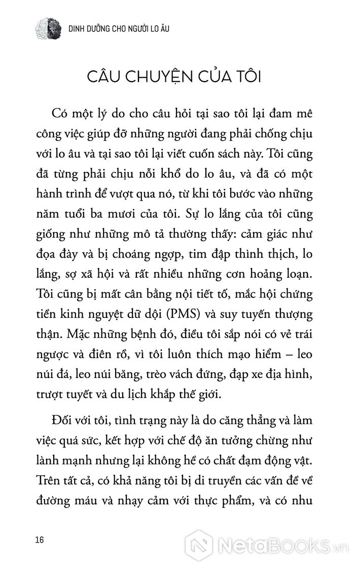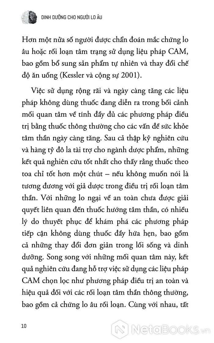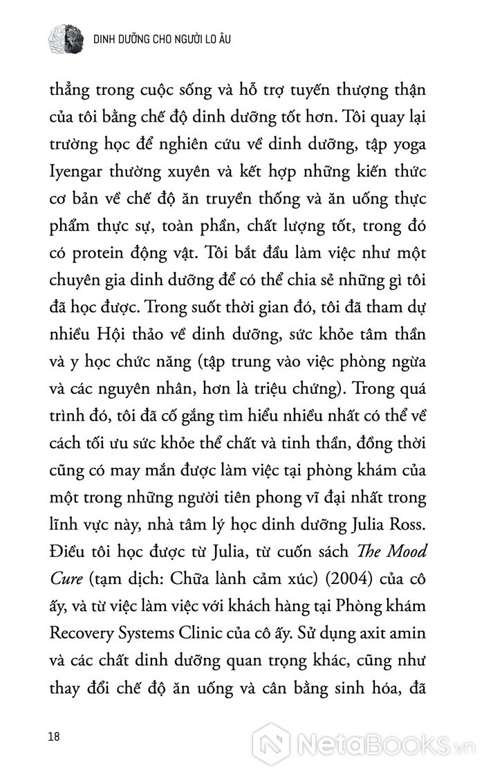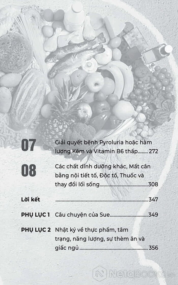 - Quan trọng không kém là các chương về dinh dưỡng mục tiêu: sử dụng axit amin, kẽm, vitamin B6 để điều chỉnh hóa học não bộ, hỗ trợ sản xuất serotonin và GABA - hai chất dẫn truyền thần kinh gắn liền với cảm giác thư giãn và ổn định.