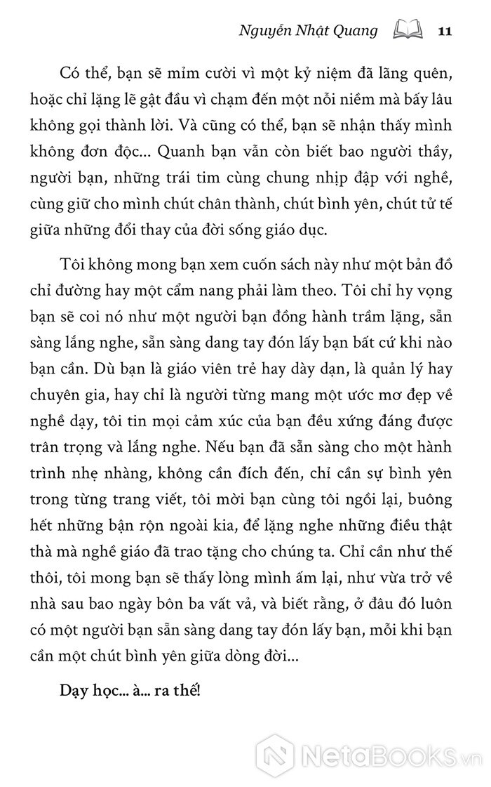 “Tác giả không chỉ tìm kiếm một phương pháp dạy học, mà còn thao thức về tự do nội tâm của người học, về một không gian nơi mỗi cá nhân tự vẽ bản đồ tri thức của riêng mình. Tôi trân trọng cuốn sách này vì nó dám đi ngược dòng, dám cất lên tiếng nói của sự giải phóng tư duy.” - GS. TS. Andrew Lian; Đại học Công nghệ Suranaree