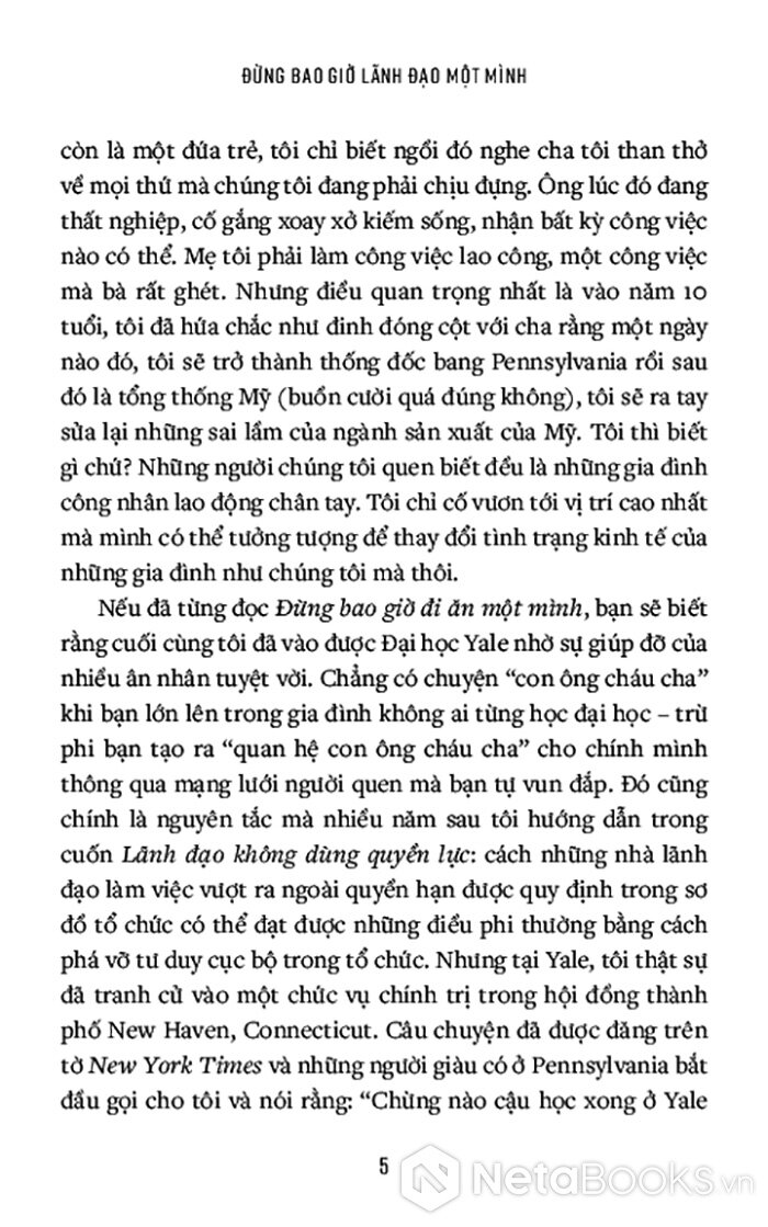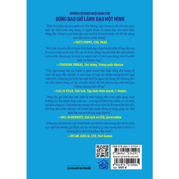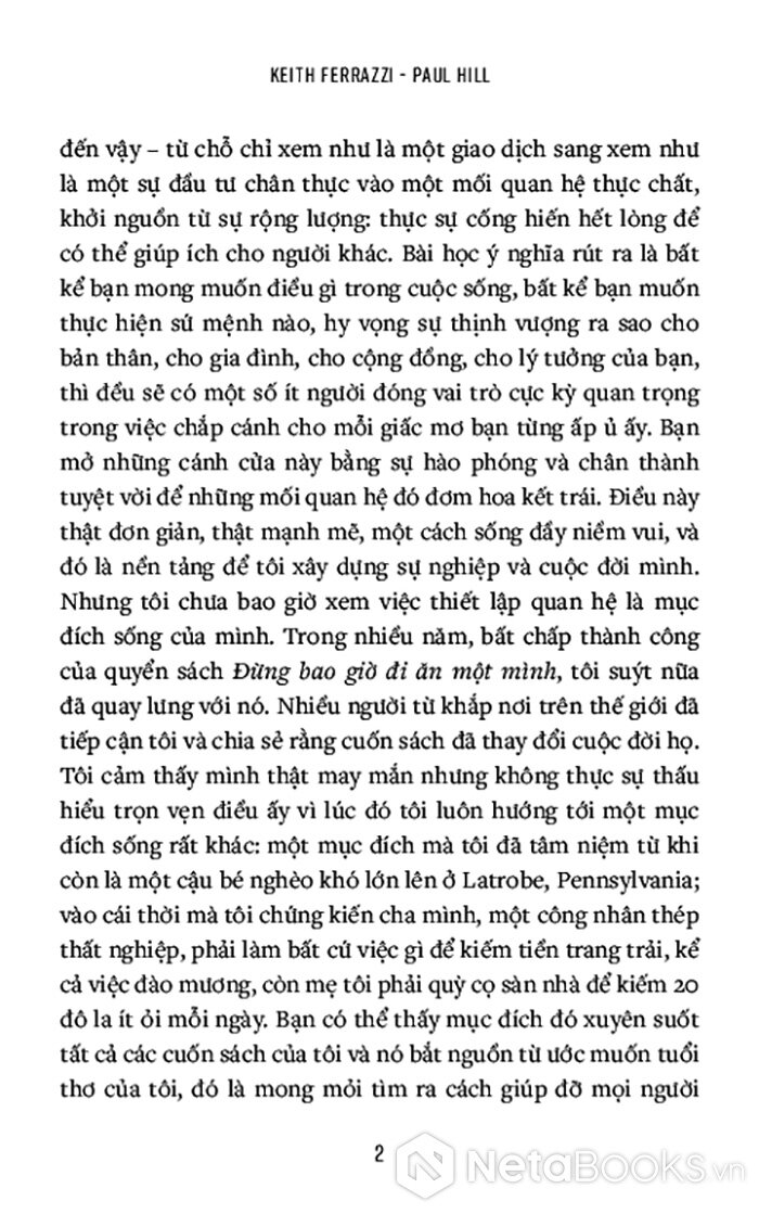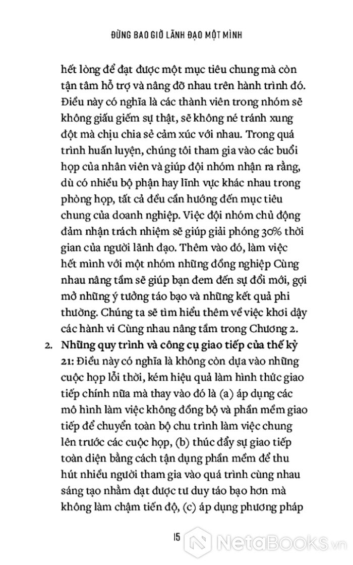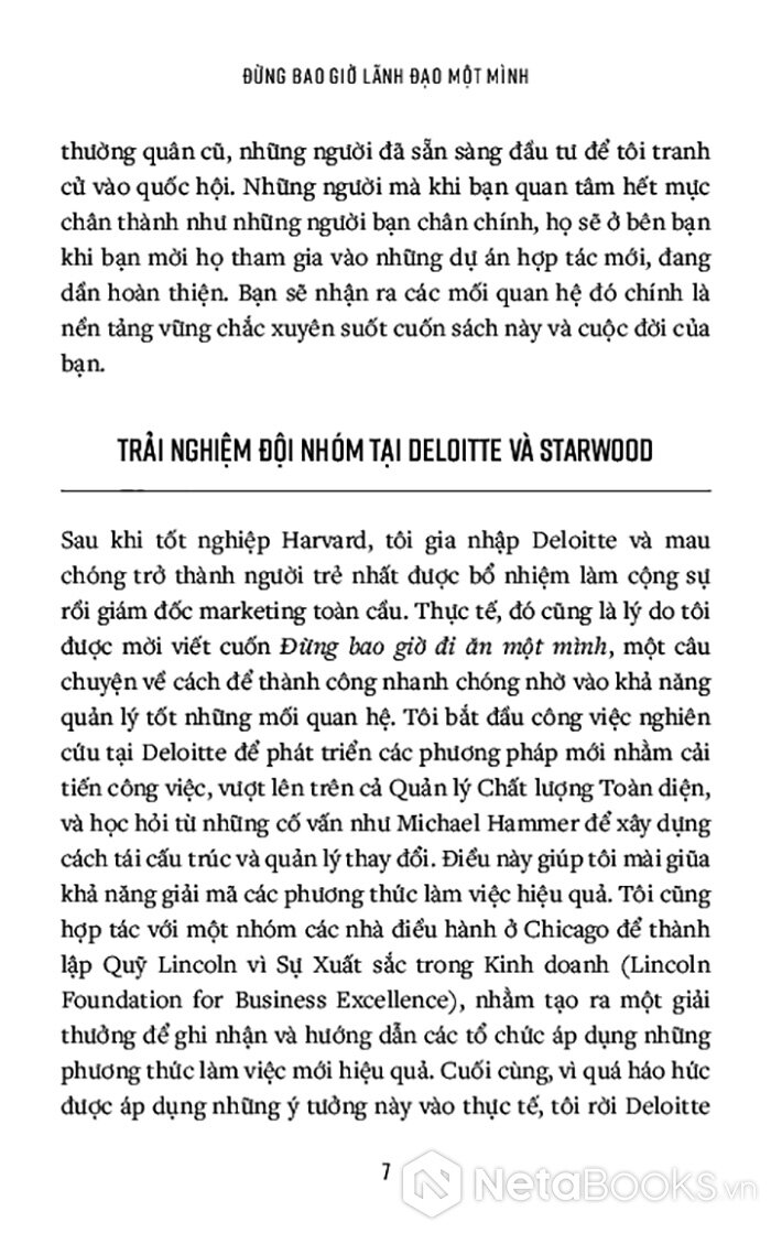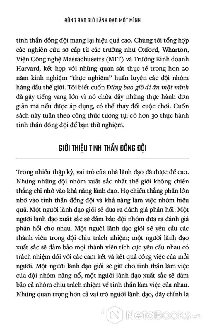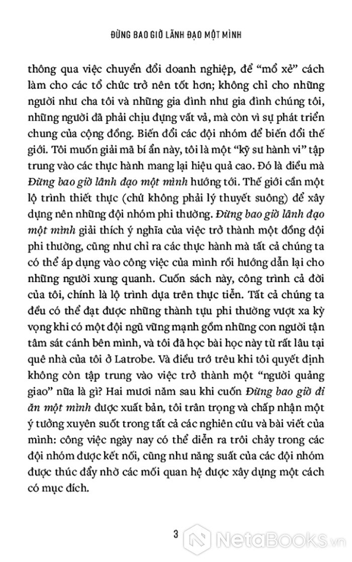 Sách Đừng Bao Giờ Lãnh Đạo Một Mình của tác giả Keith Ferrazzi, có bán tại Nhà sách online NetaBooks với ưu đãi Bao sách miễn phí và Gian hàng NetaBooks tại Tiki với ưu đãi Bao sách miễn phí và tặng Bookmark