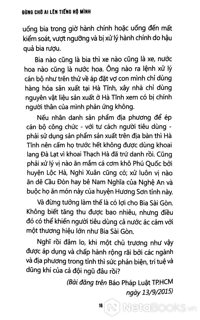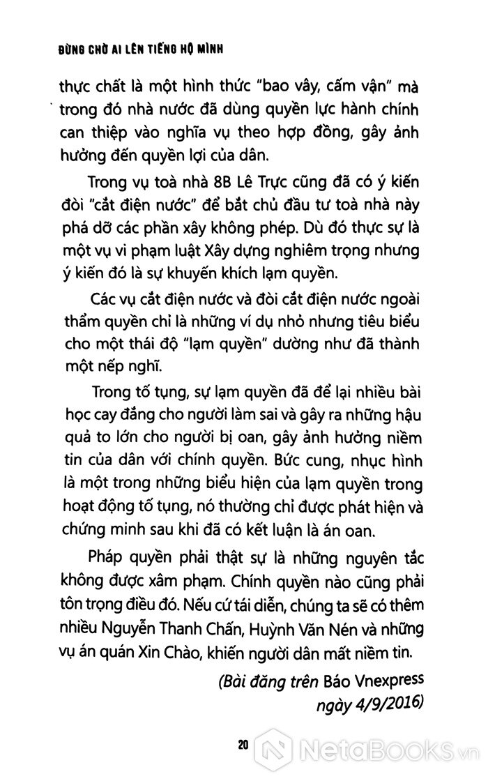 Dù không hề kỳ vọng rằng sau mỗi bài viết, mỗi sự lên tiếng, những điều gây bức xúc cho xã hội có thể biến mất hoặc thay đổi ngay được. Nhưng nếu không lên tiếng, thì tất cả những điều này vẫn còn ở đấy, tàn phá những giá trị tốt đẹp mà con người ta đã cố gắng xây dựng nên.