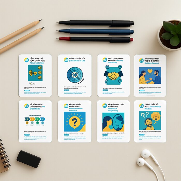 Bộ thẻ Chìa khóa khai vấn ra đời từ niềm tin đó, chắt lọc những mô hình và kỹ thuật mạnh mẽ nhất vào 48 tấm thẻ nhỏ gọn, trực quan và vô cùng dễ áp dụng.