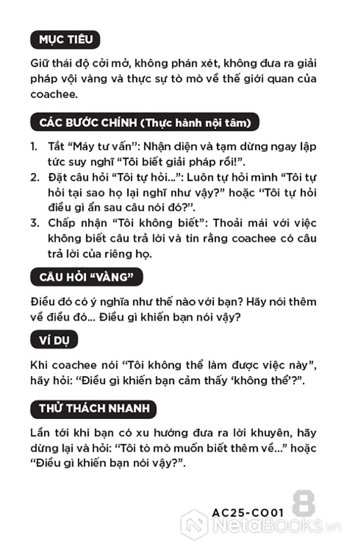 - Nếu bạn là CHUYÊN VIÊN NHÂN SỰ (HR & L&D): Dùng làm tài liệu đào tạo, công cụ cho chương trình Cố vấn (Mentoring) và hỗ trợ xây dựng văn hóa coaching.