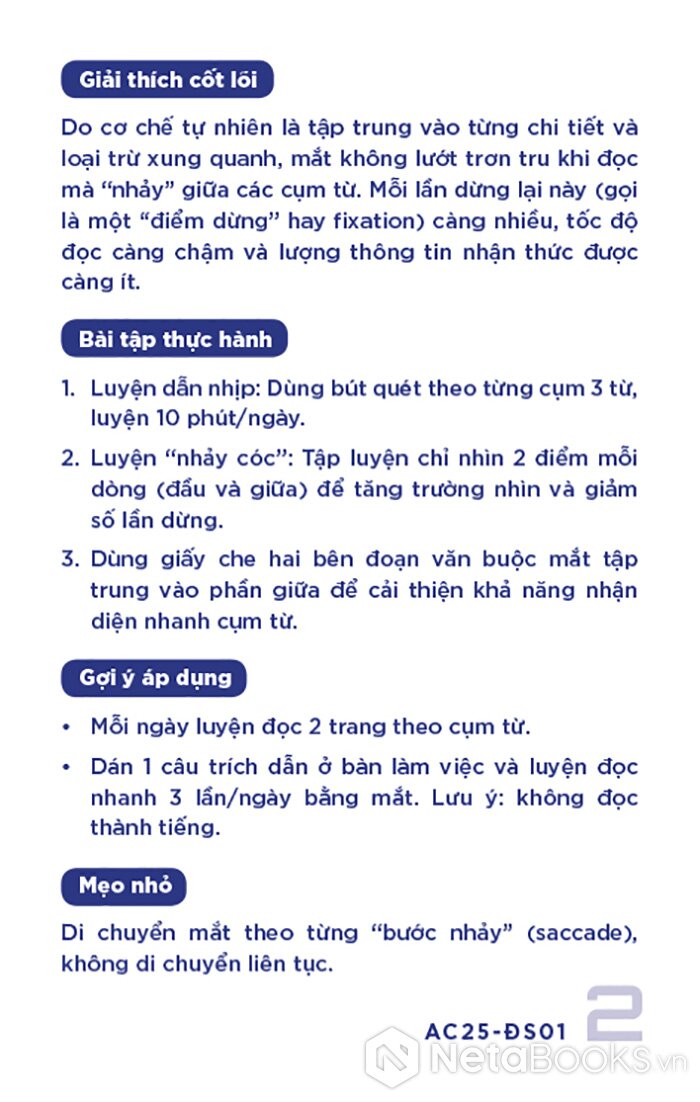 - Cá nhân muốn cải thiện tốc độ đọc, khả năng ghi nhớ và thấu hiểu nội dung.