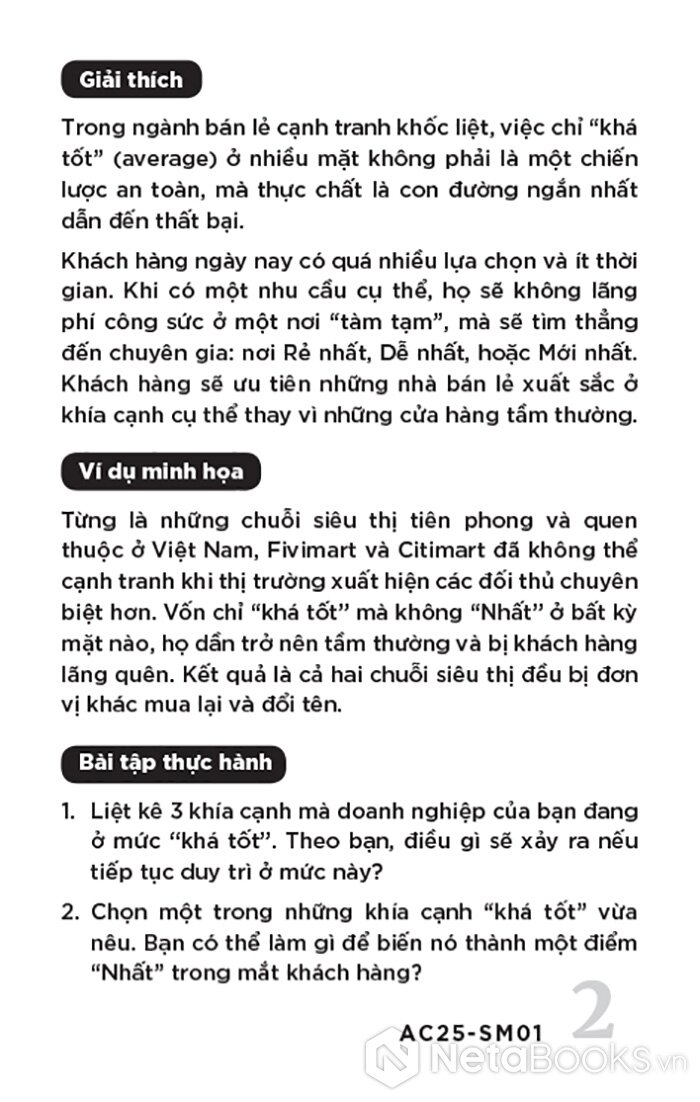 Trong thị trường đầy cạnh tranh ngày nay, đừng cố làm tốt mọi thứ để rồi trở nên tầm thường. Chìa khóa thành công là xuất sắc vượt trội ở một khía cạnh mà khách hàng coi trọng. Bộ flashcard là hệ thống rèn luyện tư duy chiến lược, giúp bạn tìm ra lợi thế đó. Điểm đặc biệt nhất là các bài học được minh họa sống động qua câu chuyện của các doanh nghiệp Việt Nam, giúp bạn dễ dàng thấu hiểu và áp dụng ngay. Hãy để bộ thẻ trở thành “huấn luyện viên bỏ túi” giúp bạn chinh phục vị thế “Số 1” của riêng mình!