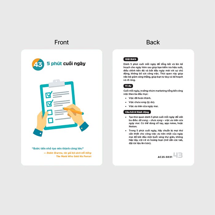 - Mỗi ngày chọn một thẻ, đọc - ghi chú - áp dụng vào công việc thực tế.