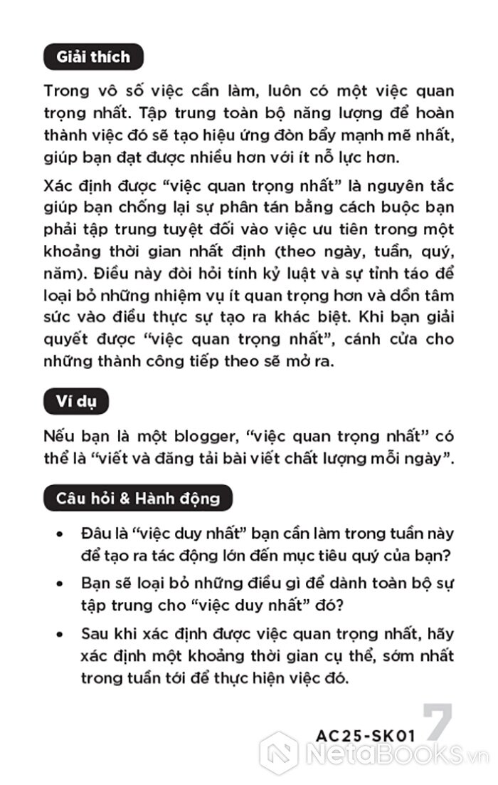 - Câu hỏi & hành động: Đặt câu hỏi phản tư và đưa ra bài tập cụ thể để bạn không chỉ biết, tự vấn mà còn có thể thực hành ngay lập tức.
