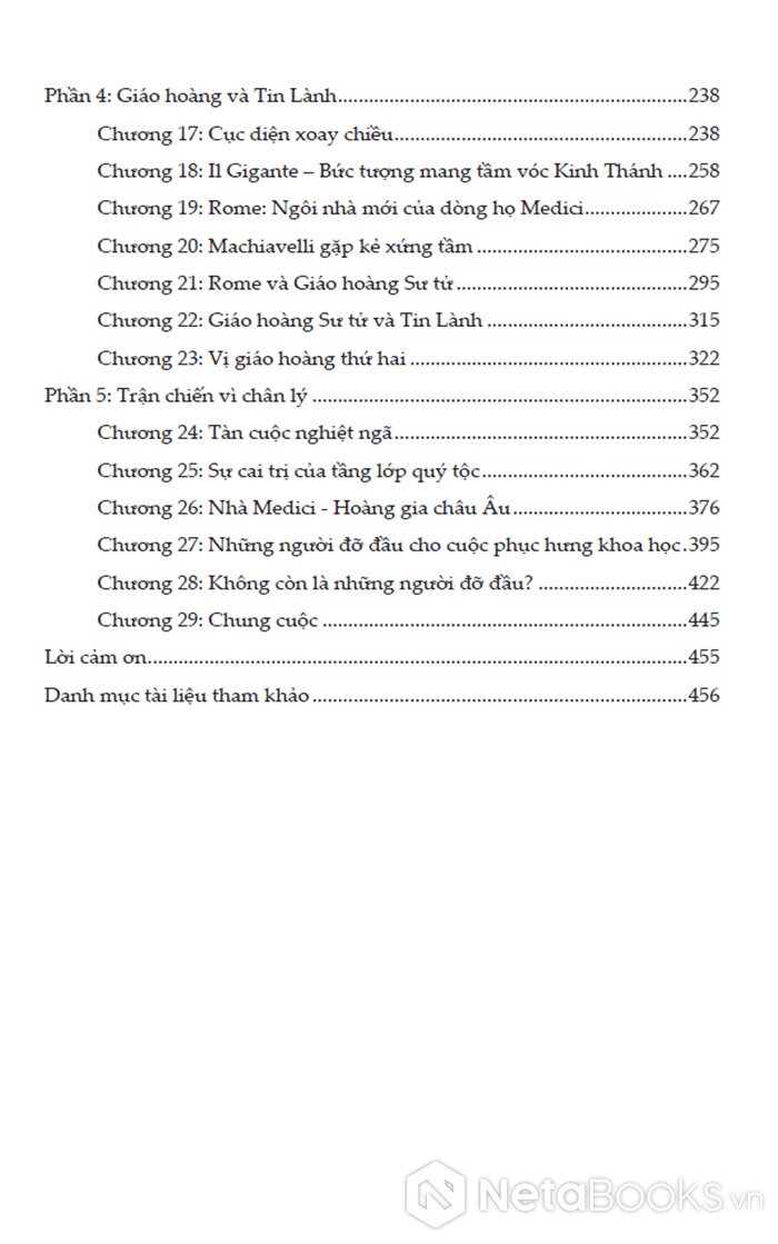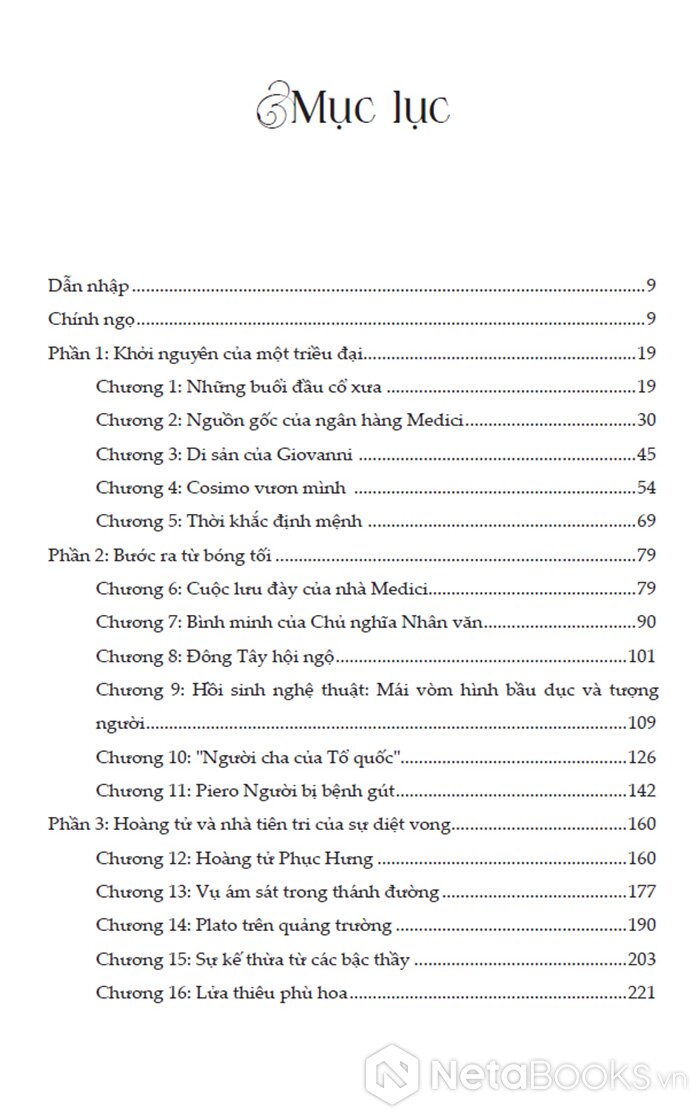 Mục lục sách Gia Tộc Medici - Từ Ngân Hàng Đến Ngai Vàng - Hành Trình Định Hình Thời Phục Hưng - Paul Strathern (Bìa Cứng)