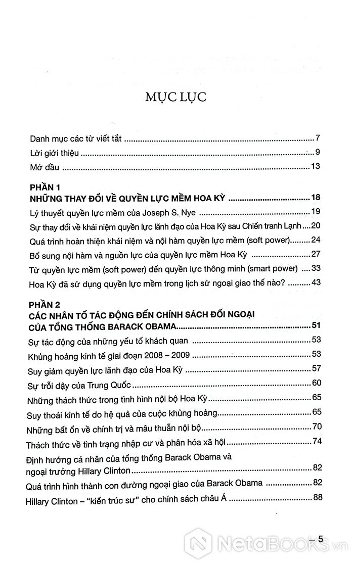 Mục lục sách Giải Mã Quyền Lực Mềm Hoa Kỳ Dưới Thời Barack Obama - Ngô Thị Bích Lan