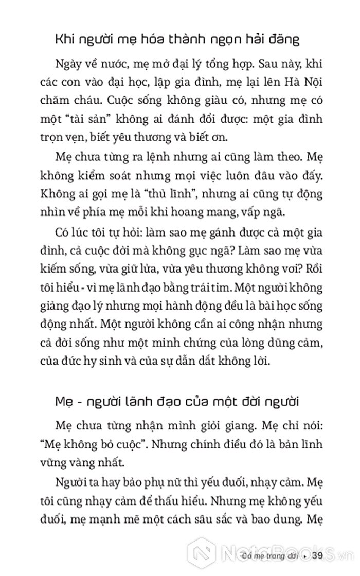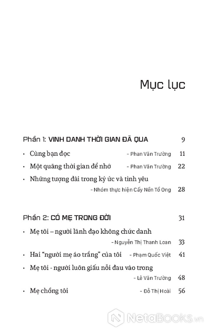Mỗi câu chuyện là một mảnh ghép riêng, bạn đọc có thể thưởng thức theo bất kỳ thứ tự nào. Nhưng khi khép lại những trang cuối cùng, bạn sẽ dễ dàng nhận ra dòng chảy thời gian len lỏi qua từng thế hệ, để ta thấy sự vận động của lịch sử và sự đổi thay của xã hội qua những khung hình gia đình, với trung tâm là người phụ nữ Việt.