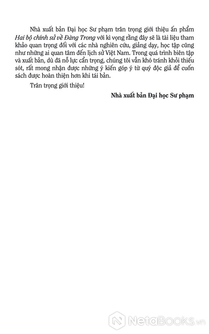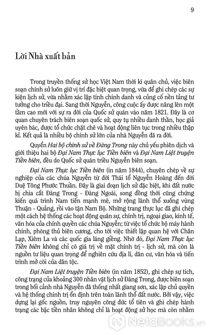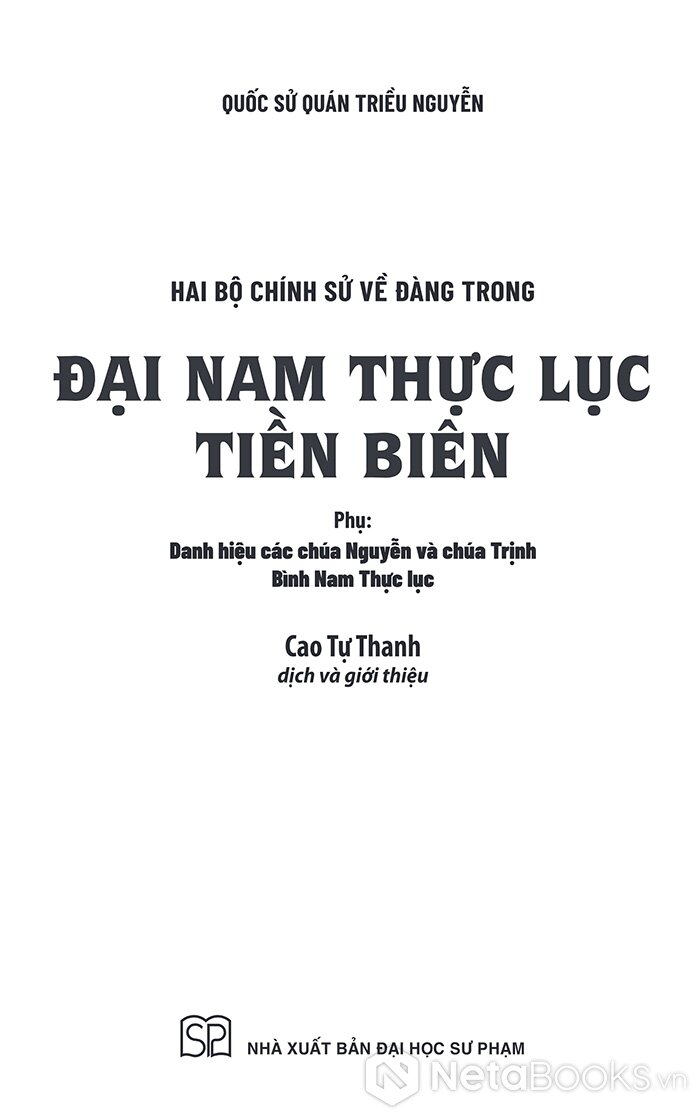 Sách Hai Bộ Chính Sử Về Đàng Trong - Đại Nam Thực Lục Tiền Biên của tác giả Quốc Sử Quán Triều Nguyễn, có bán tại Nhà sách online NetaBooks với ưu đãi Bao sách miễn phí và Gian hàng NetaBooks tại Tiki với ưu đãi Bao sách miễn phí và tặng Bookmark