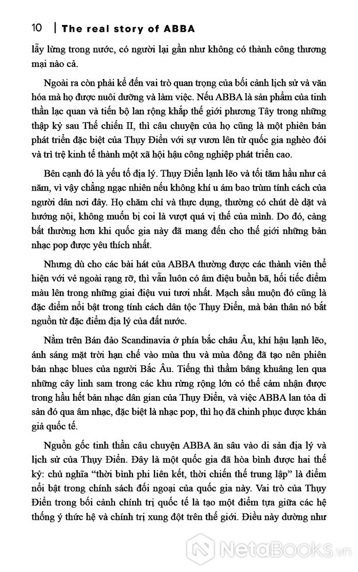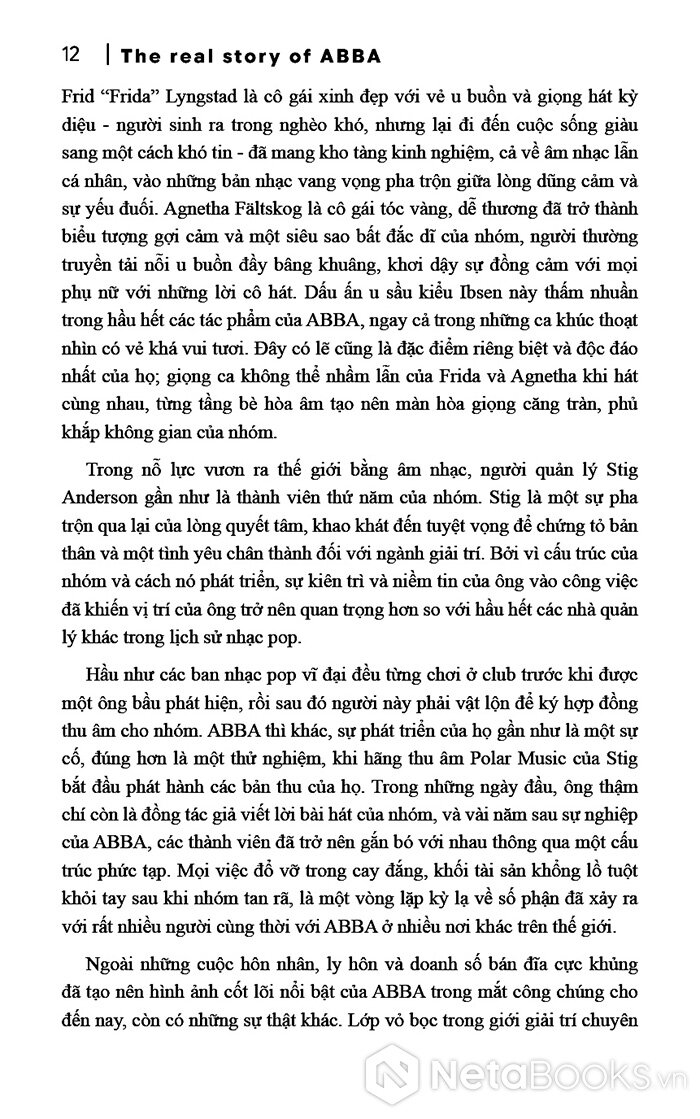 Ngoài những cuộc hôn nhân, ly hôn và doanh số bán đĩa cực khủng đã tạo nên hình ảnh cốt lõi nổi bật của ABBA trong mắt công chúng cho đến nay, còn có những sự thật khác. Lớp vỏ bọc trong giới giải trí chuyên nghiệp đã giúp họ che giấu thành công bản chất thực sự của mình và thực tế cuộc sống mà họ đã trải qua. Trong nhiều trường hợp, thậm chí không phải chính họ duy trì vỏ bọc đó, mà truyền thông quốc tế dường như cũng nhiệt tình làm điều đó cho họ, với việc bỏ những hé lộ cố ý của các thành viên về câu chuyện thực sự, chưa kể của họ. Và những điều này đang chờ đợi độc giả khám phá thông qua cuốn tiểu sử hấp dẫn này.