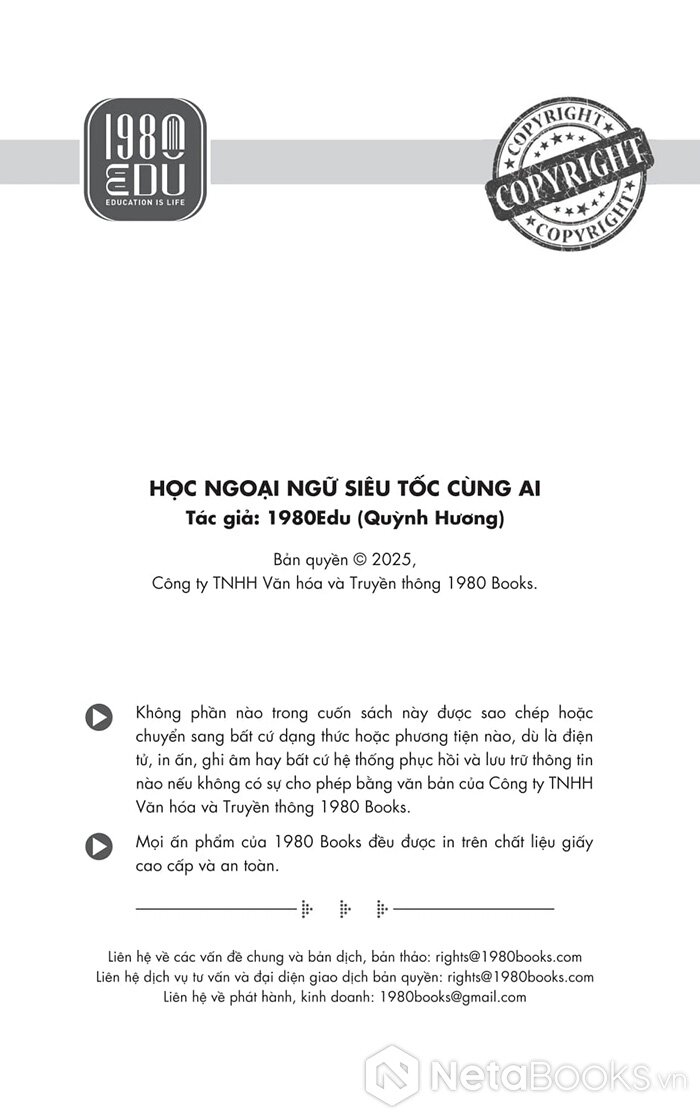 Sách Học Ngoại Ngữ Siêu Tốc Cùng AI của tác giả 1980Edu (Quỳnh Hương), có bán tại Nhà sách online NetaBooks với ưu đãi Bao sách miễn phí và Gian hàng NetaBooks tại Tiki với ưu đãi Bao sách miễn phí và tặng Bookmark
