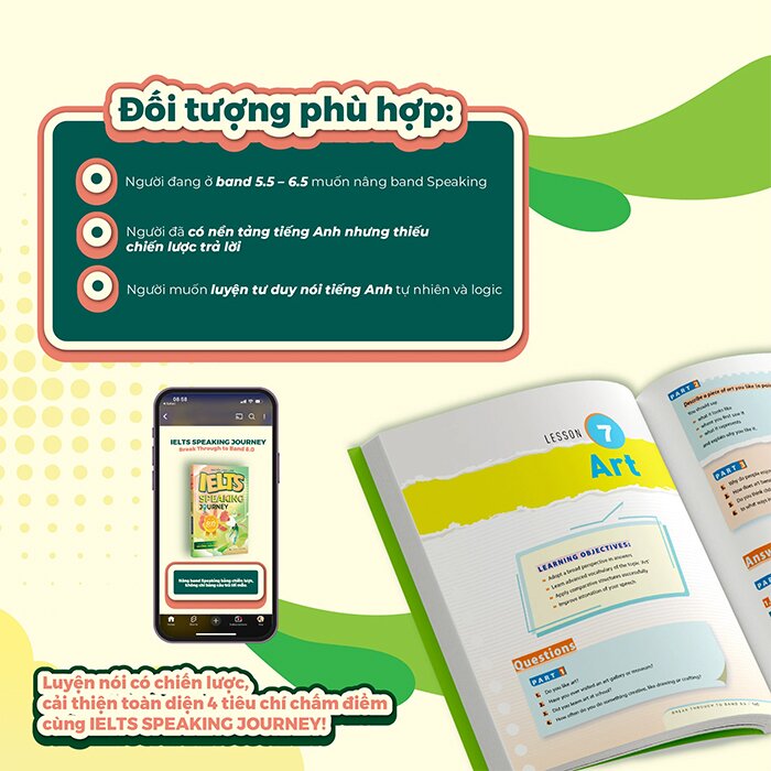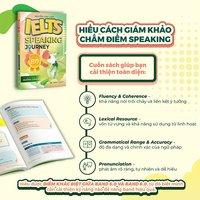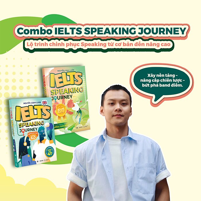 Sở hữu trọn bộ IELTS SPEAKING JOURNEY - Speak Your Way to Band 6.0 và Break Through to Band 8.0 để xây dựng lộ trình luyện Speaking từ nền tảng đến nâng cao, giúp bạn từng bước nâng cấp tư duy trả lời và tự tin chinh phục mục tiêu IELTS của mình.